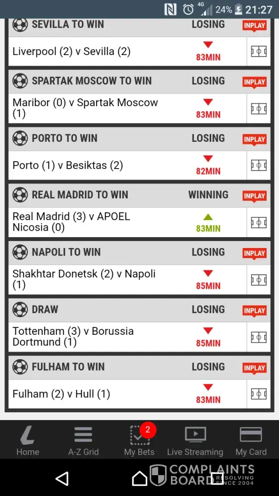 Hi I've went onto thegrid to follow my betting slip to then find out it's not even giving me the correct information as I know a few teams are winning, but on your system it says losing. I've taken a screen shot of this as proof that the teams are winning but your system is wrong and saying it's losing.