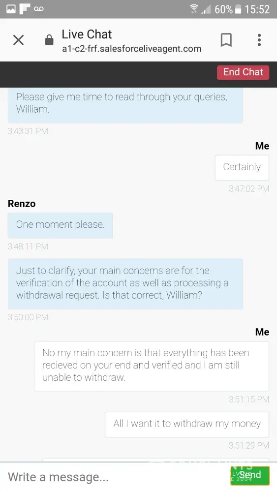 Good afternoon, upon supplying yous with requested documents and depositing further funds as I was told to do so to enable me to withdraw.