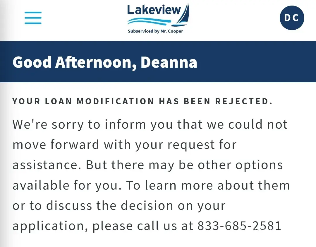Desired outcome: People stop using Lakeview Loan Services until they figure out how to actually help their customers instead of looking for ways to get more money out of them.