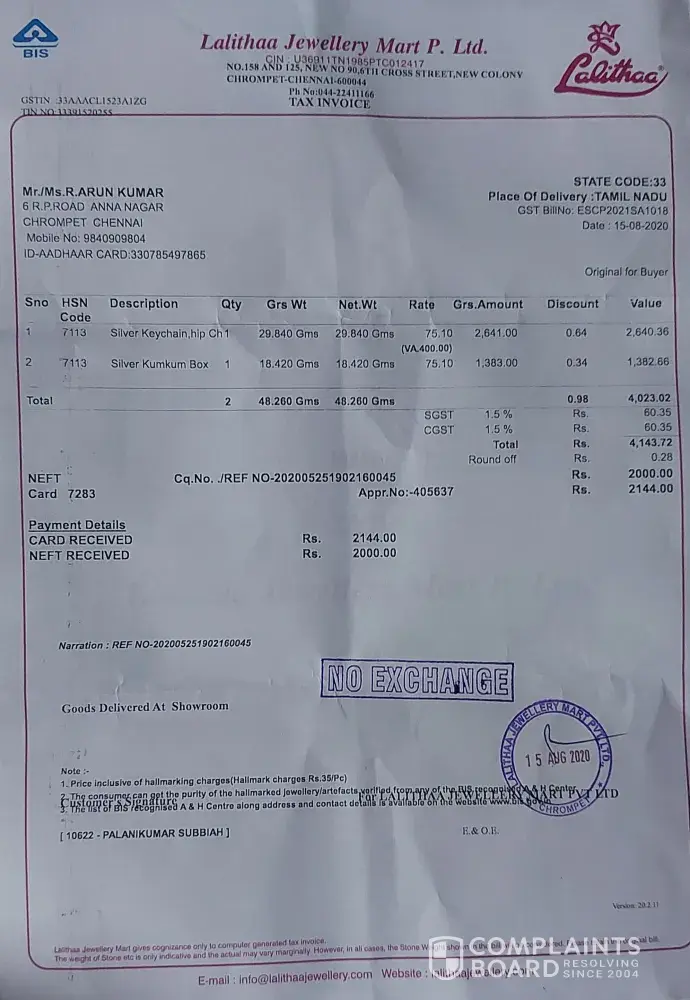Lalitha Jewellery Complaint about Lalith Jewellery
