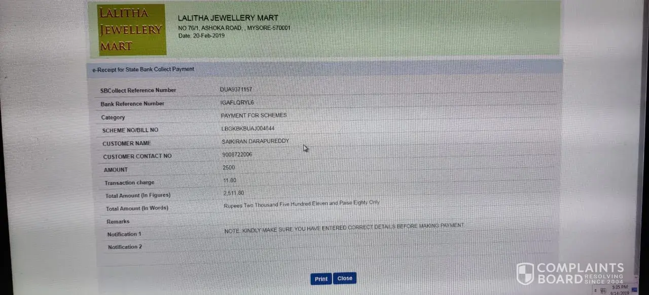 We have complained one month back regarding the same in lalitha jewellers malleswaram Bangalore, where we our chits have been initiated. Till now it has not been reconciled even after continuous follow up.