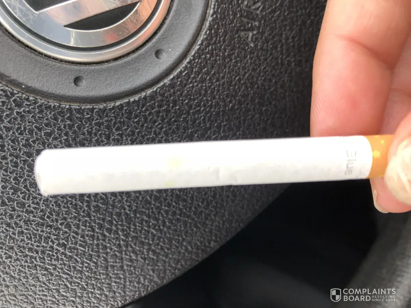 I am a regular smoker of your Lambert and Butler Blues. I went to light one this afternoon and noticed there was a thread protruding slightly at the end. I opened the cigarette to find quite a substantial amount of white string inside? I have smoked your cigarettes for almost 20 years and spend around £70 a week on them. I understand that the tobacco is of a lower grade, but this is unacceptable. I have attached photos.