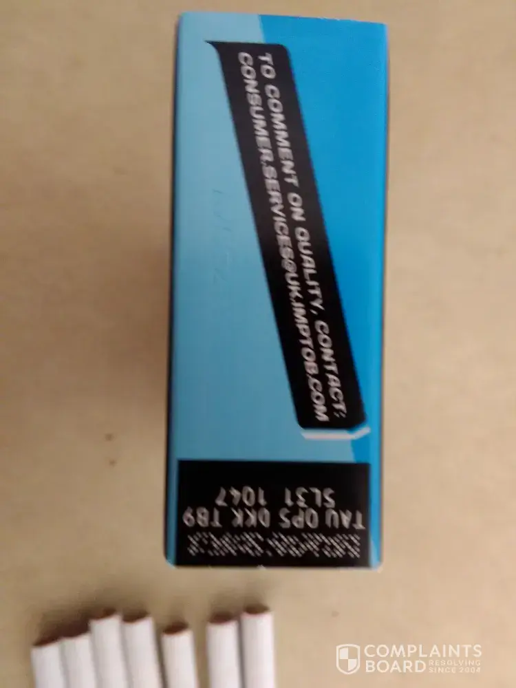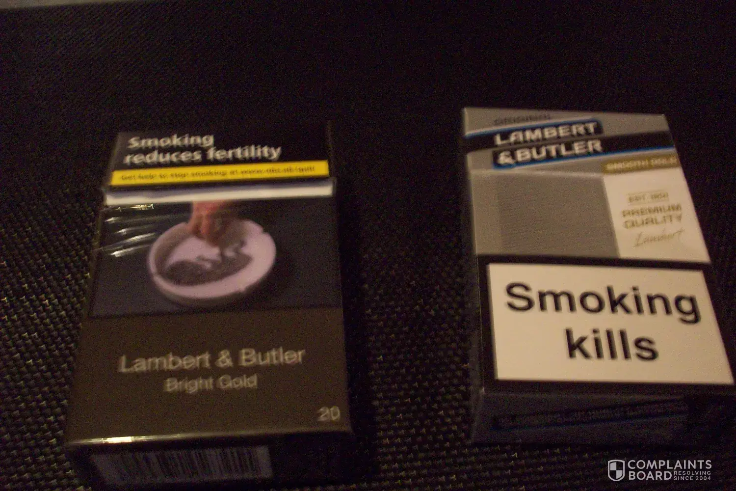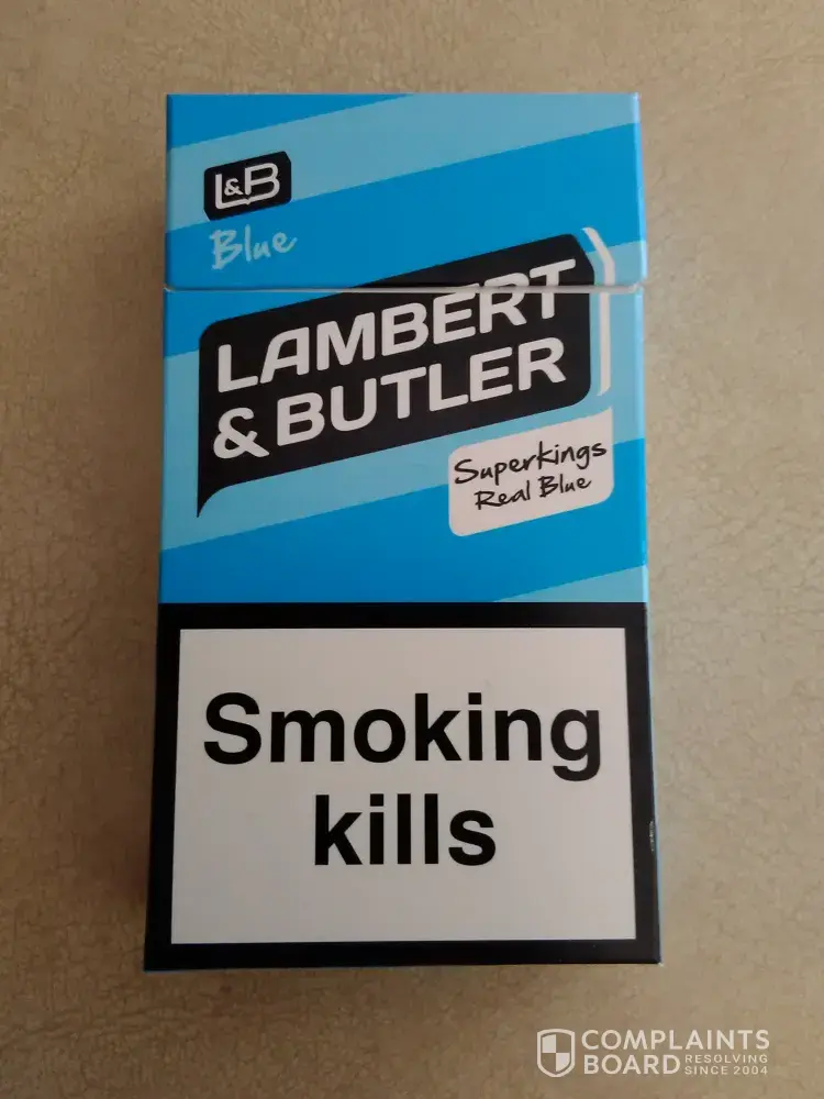 Hi I bought a 20 pack of Lambert & and butler superkings real blue yesterday 25th November 2016 from my local Mccolls store in merthyr Road Whitchurch Cardiff. When I got home I smoked a cigarette and it was menthol. I I thought it may be a one off but the whole pack is menthol. The cigarettes have a brown butt but they are all menthol instead of normal. I'm not one to normally complain but I absolutely hate menthol they give me a headache and I'm really unhappy that the wrong cigarettes are in my packet. Money is tight so I can't afford to waste them. I wanted to make you aware as you may need to recall these cigarettes, I was wondering what you would be able to do to recompensate me for this mistake? Underneath the barcode is: TAU 0P5 DKK TB9 5L31 1047. I have been smoking Lambert and butler for 15 years and I switched to the blue from the silver when they were launched. My name is S.