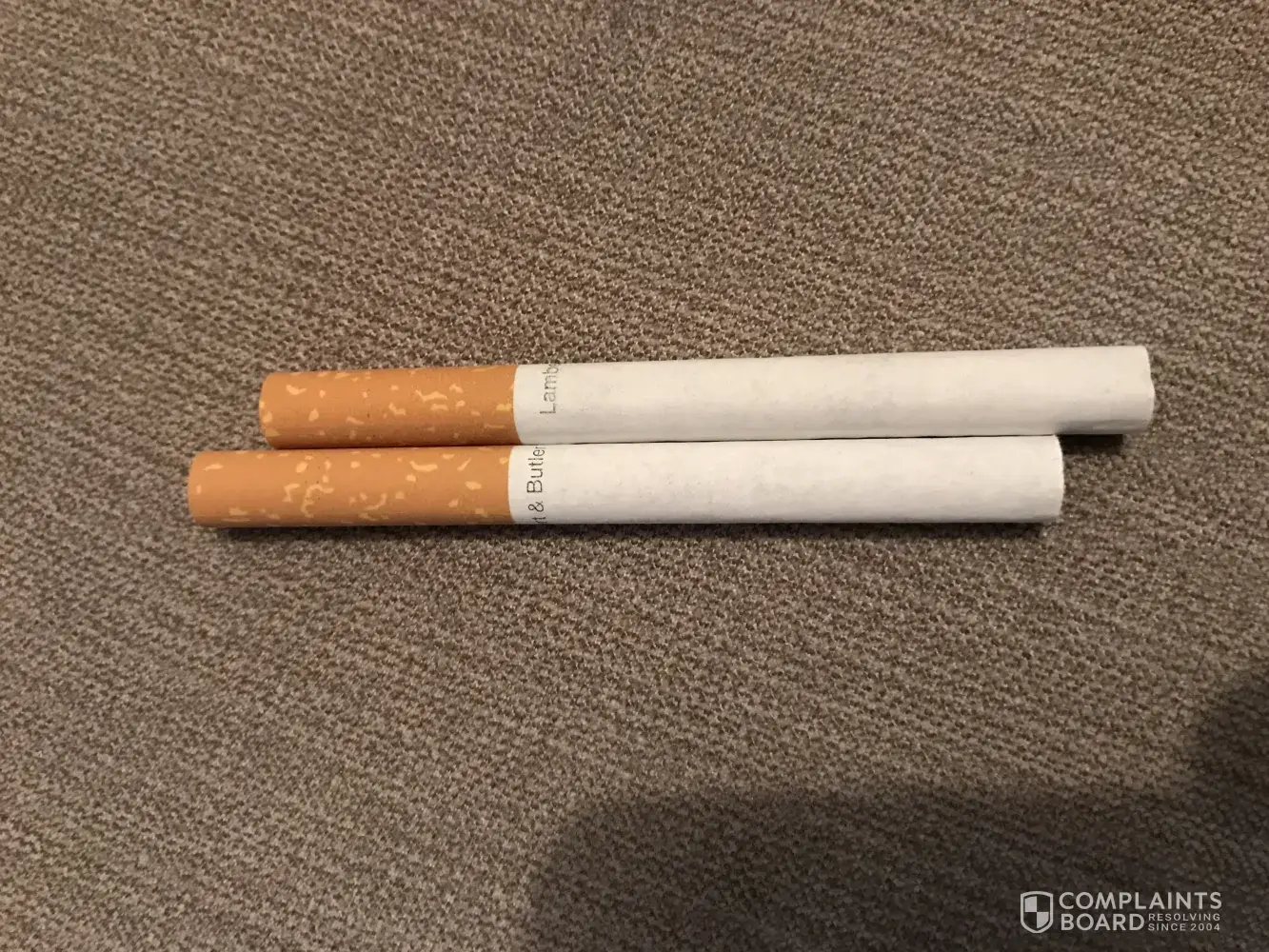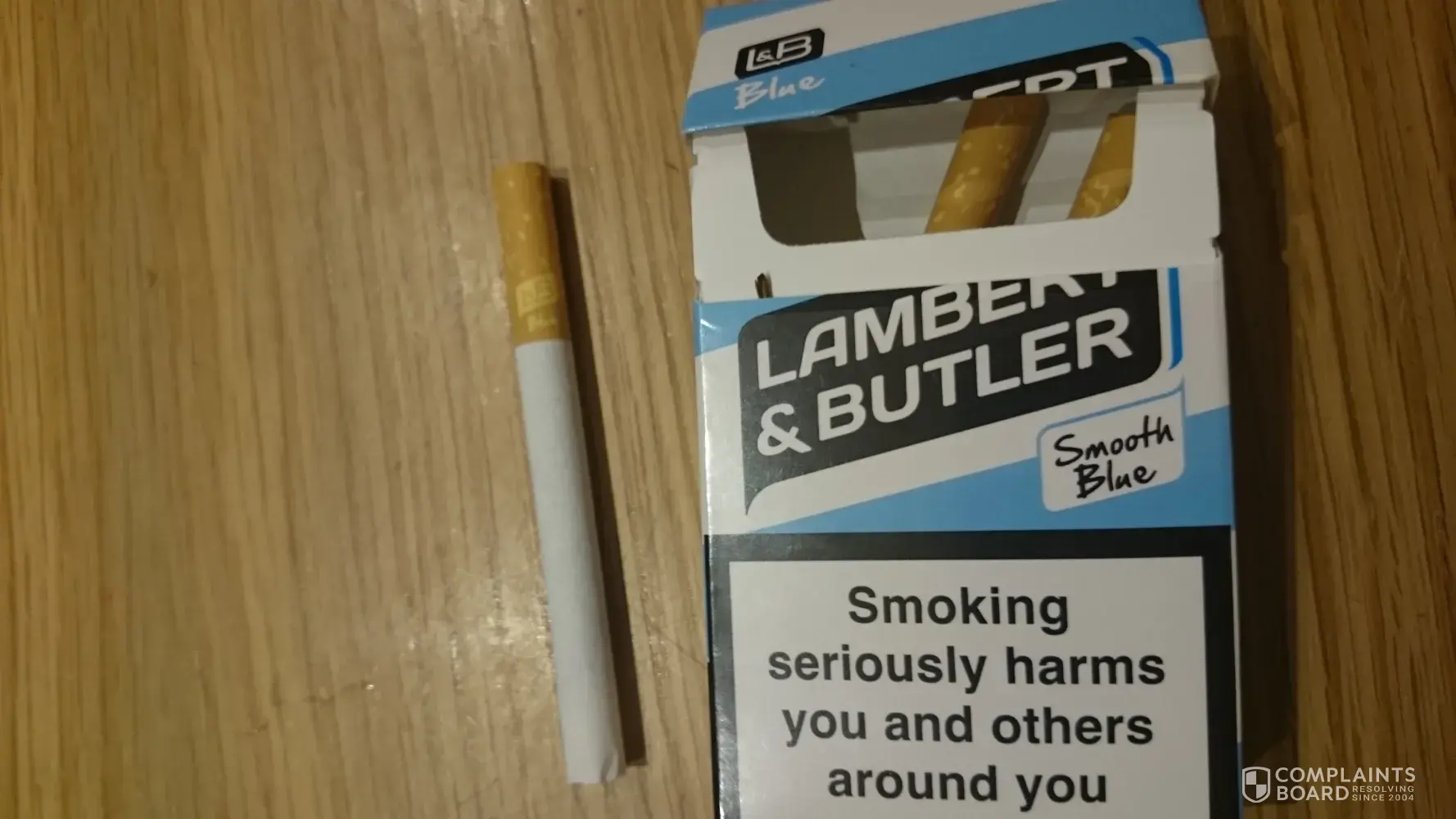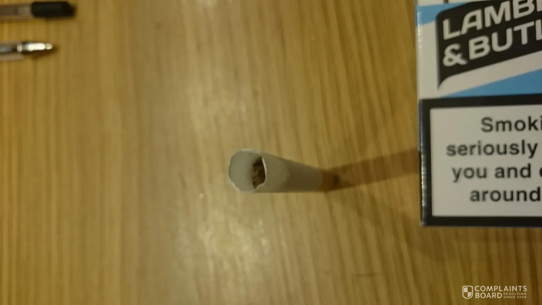 I am writing to you to complain about your lambert and butler blue smooth. These are the cigarettes myself and husband smoke. Between us we smoke 60 a day and the last month we have had an issue with the ends of the cigarette containing no tobacco. Cigarette habits are expensive enough without this issue I have decided to take a photo to send if needed as it is becoming a regular issue and I am not happy with the product.
