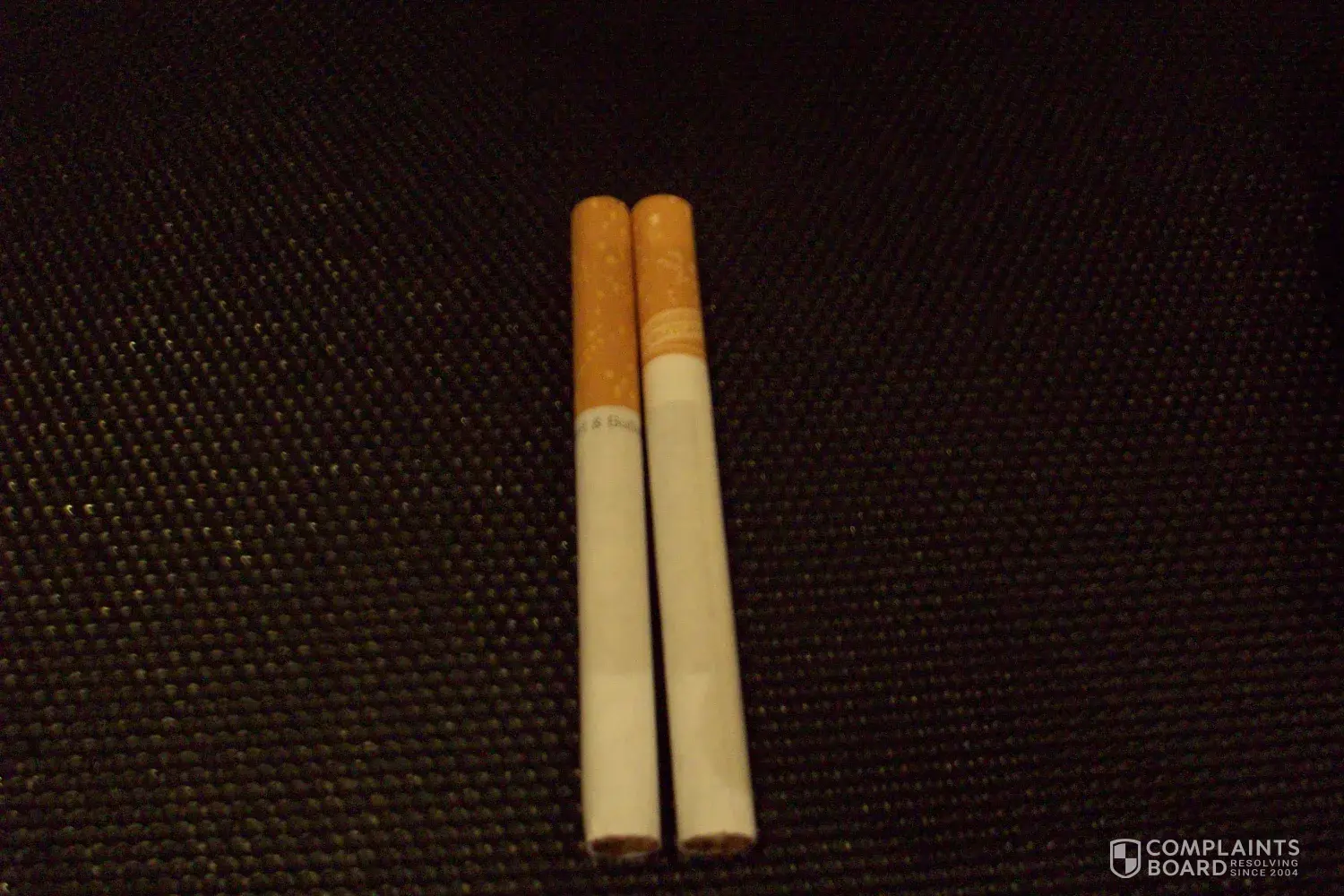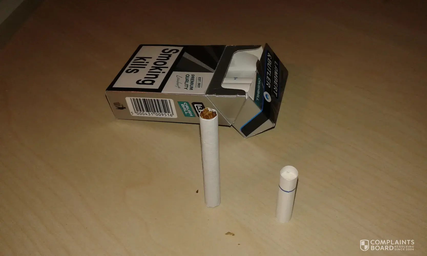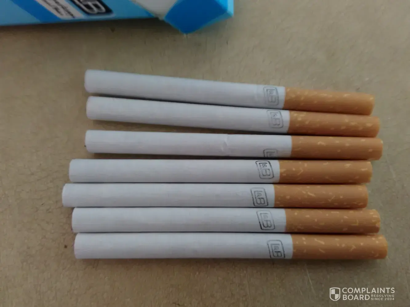 I am writing to you to complain about your lambert and butler blue smooth. These are the cigarettes myself and husband smoke. Between us we smoke 60 a day and the last month we have had an issue with the ends of the cigarette containing no tobacco. Cigarette habits are expensive enough without this issue I have decided to take a photo to send if needed as it is becoming a regular issue and I am not happy with the product.
