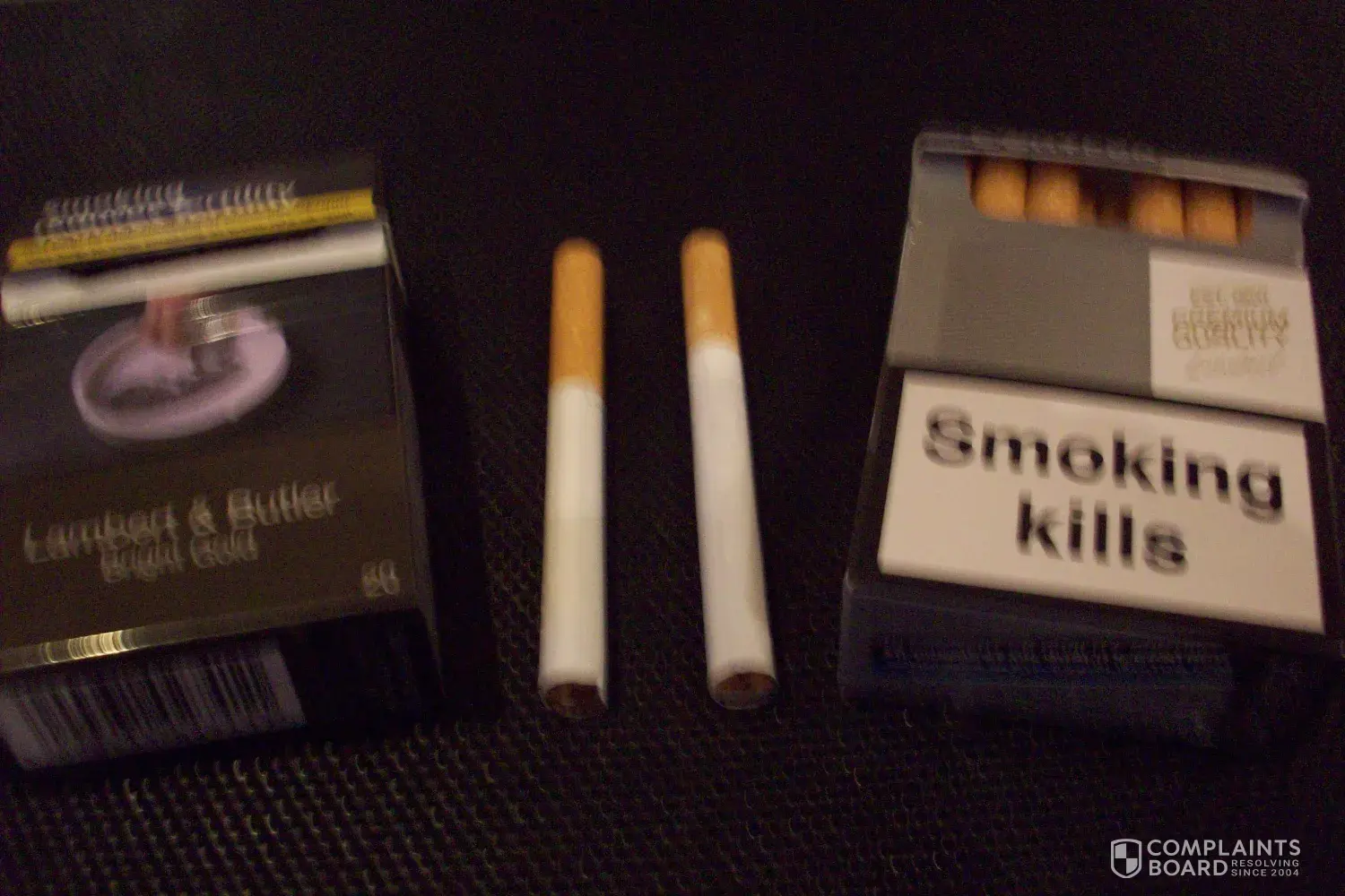 I bought a 20 pkt of cigarettes and smoked 3 in a row and it would only light half a side it was like there was wood in the other side still got the rest of the packet it burnt a hole in my settee. Can you fatback to me asap before I take this further I am going to the local store in the morning to find out more. I have been smoking and buying cigarettes from yourself for years from all over the world for years and I feel let down thanks