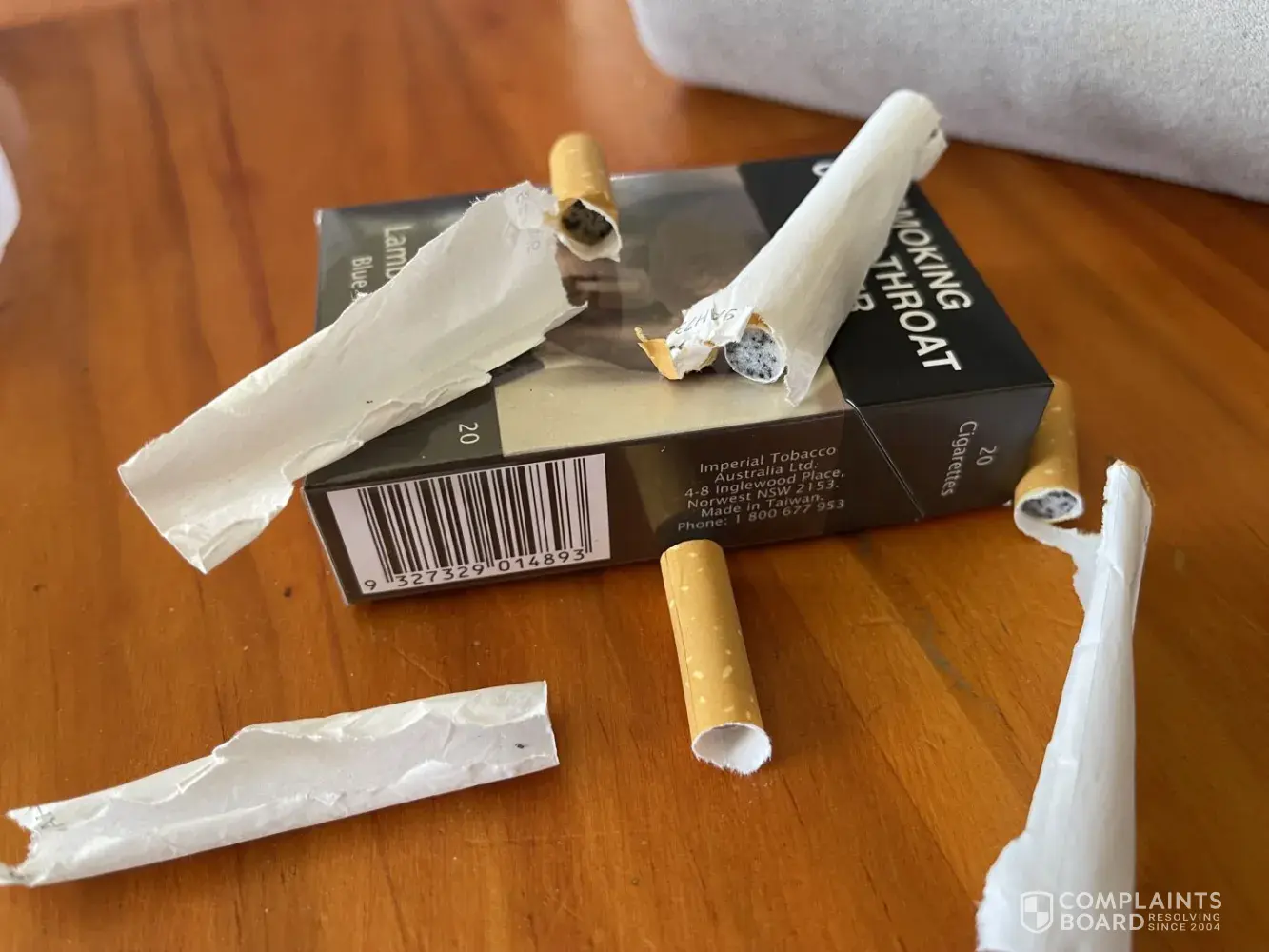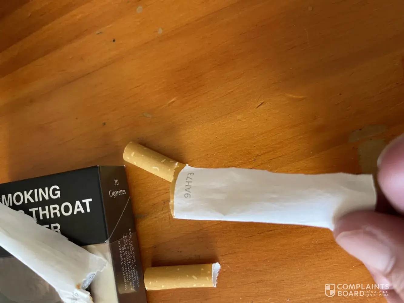 I have attached pictures to show the cigarettes and also the package details. Costing the amount they do, I expect proper cigarettes. I could get better abroad. Please look into this and get back to me within the normal 5 working days complaints procedure.