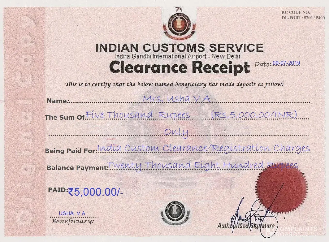 custom charges 24, 800/inr