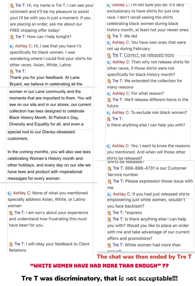 I'm an online live chat, Tre T the assistant was racist towards me. This is not acceptable. I am including screen shots complied into one image. They are not holding up to their campaign for diversity and inclusivity campaign launched just over a year ago. Since that claim to to promote diversity and inclusivity, I asked simple questions about where I could find items. It ended the in a racist comment and Tre T shutting out the chat abruptly