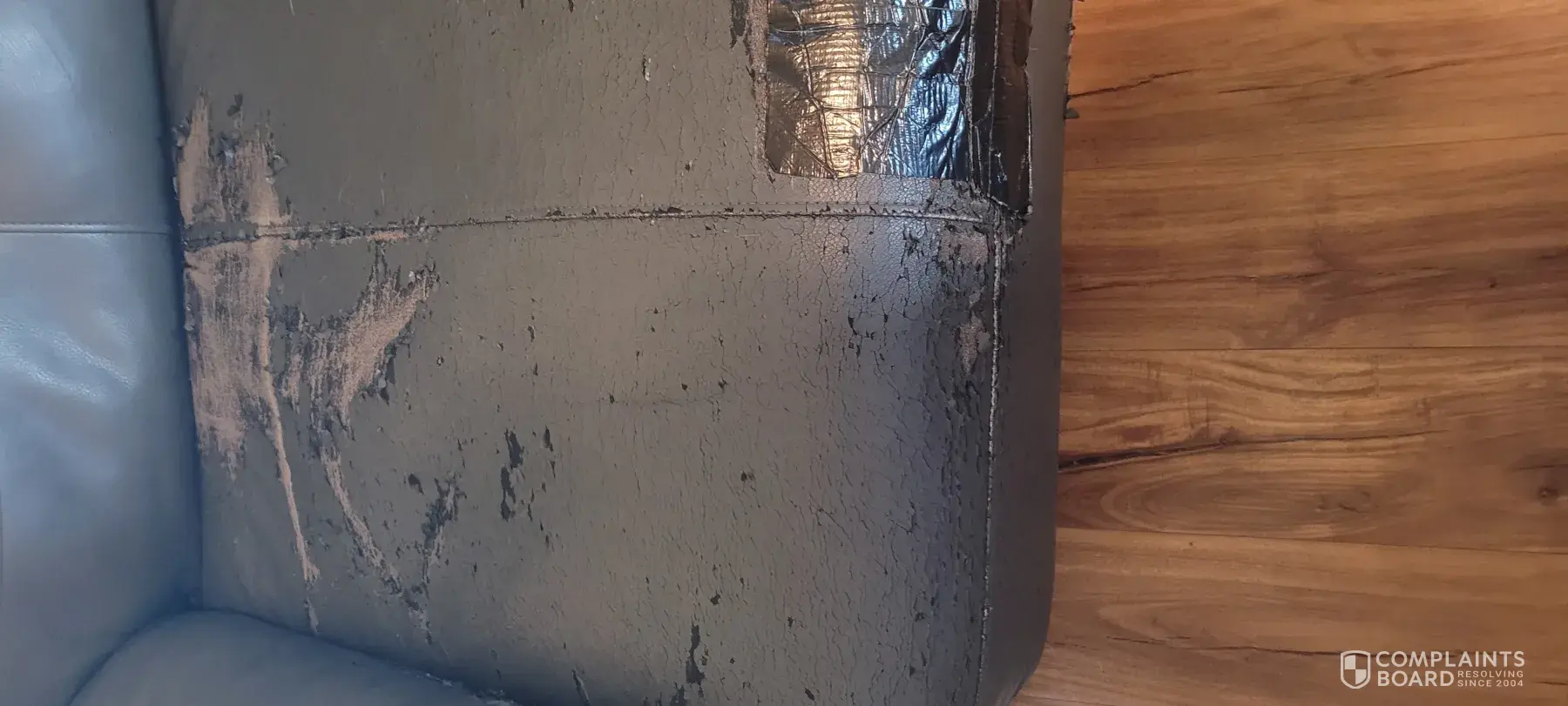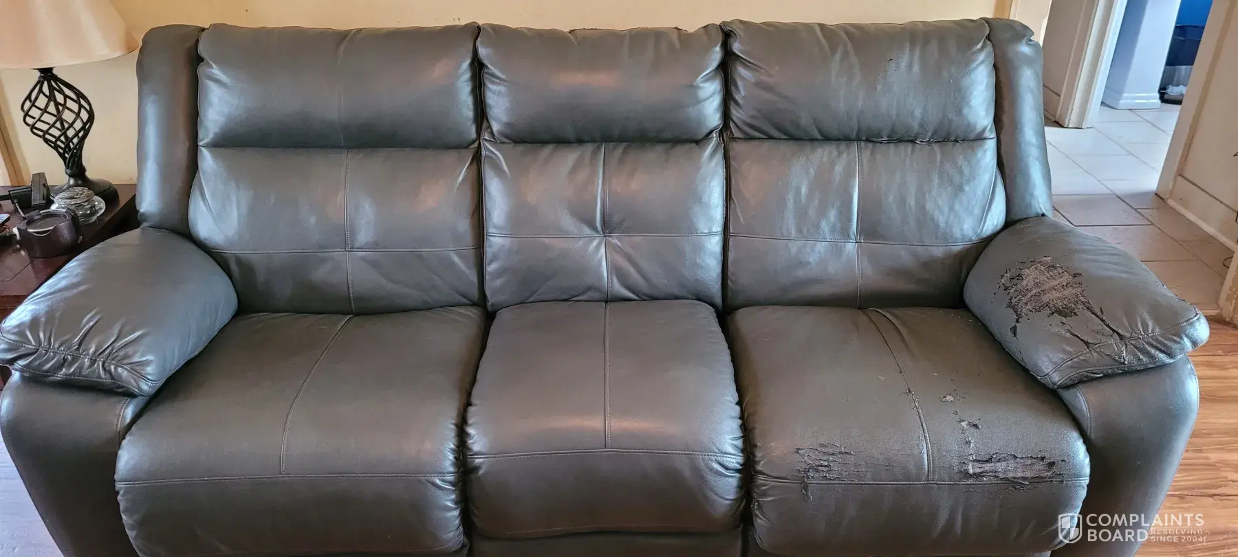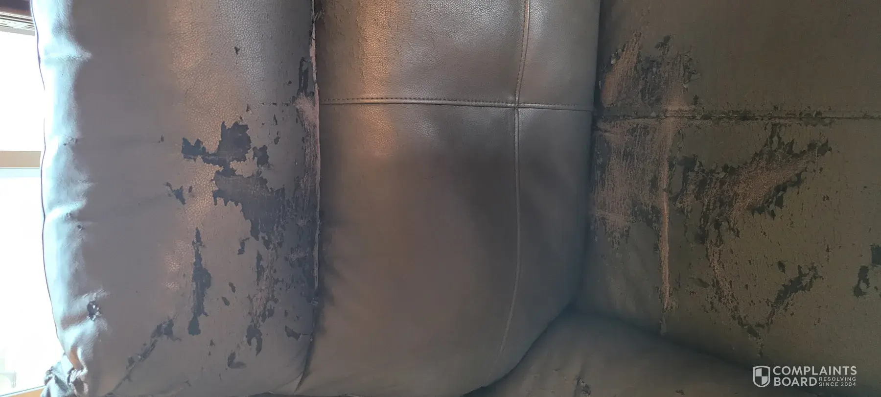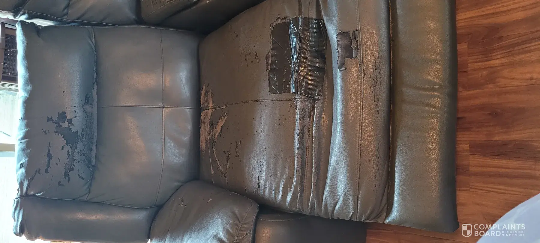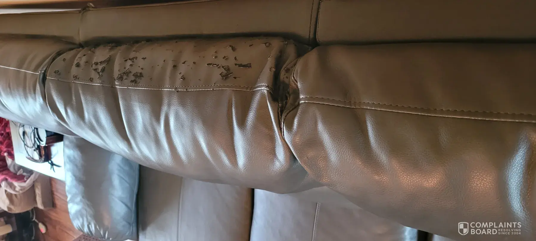 Love seat was delivered on 12-23-2019 purchased from classy home model number50280-BR-63 2021 October item is peeling nothing has been done I live alone no pets Or children this love seat is now