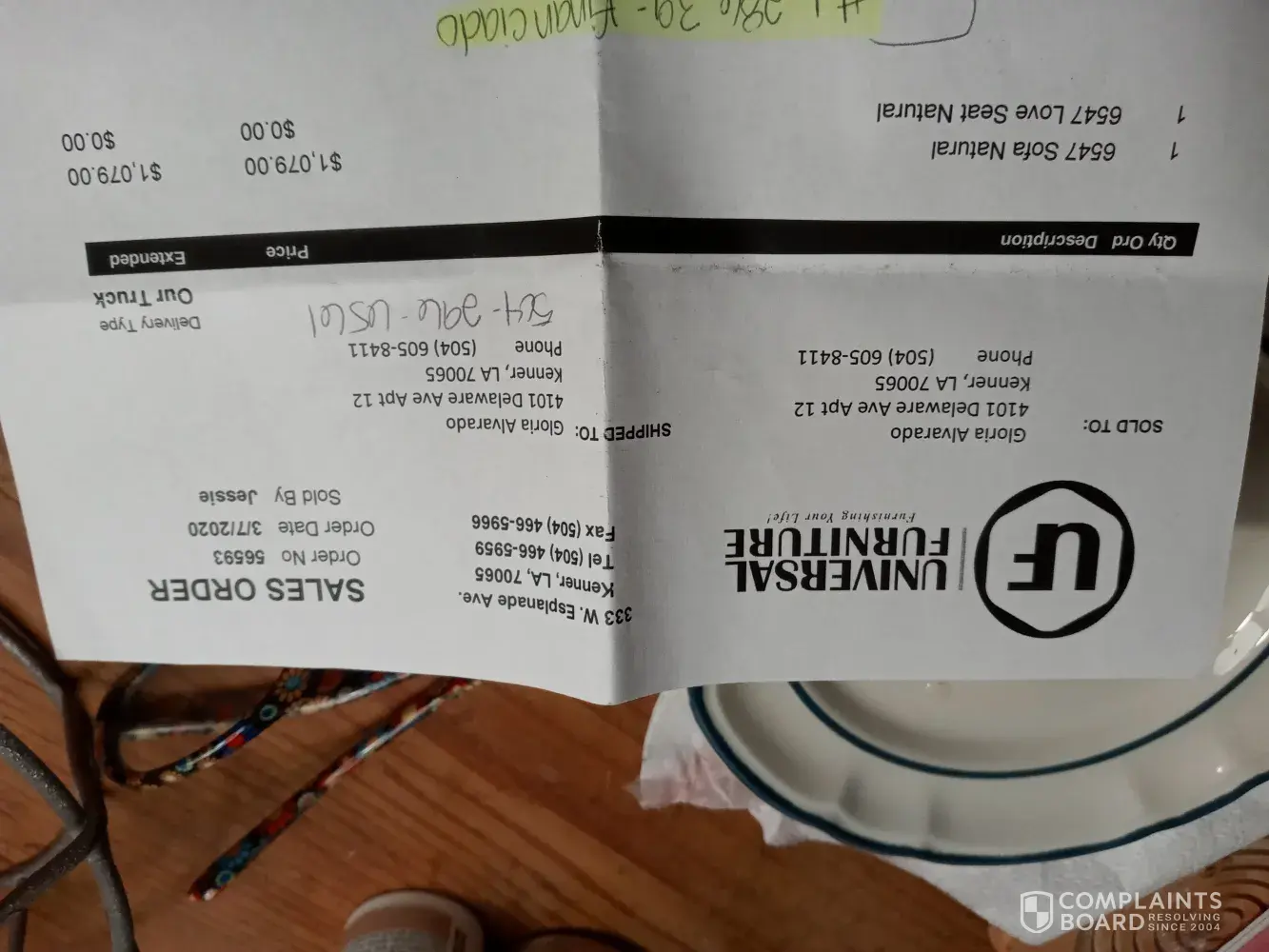 I hereby inform you that the sofa and loveseat set from its renowned Simmons brand that I bought at Universal furniture in the city of Kenner Louisiana in March 2020 I noticed that a few weeks ago the left arm of the loveseat was the sponge has sunk in and a hole can be seen in the center of the arm; which surprises me a lot because we are a couple of 60 and 66 years old and that we have made proper use of the furniture, so I ask you to apply the guarantee that you promote on your furniture, repairing it or changing the set. Thank you in advance for your attention to this problem. have a nice day. Mrs. Gloria Alvarado e-mail [protected]@yahoo.com