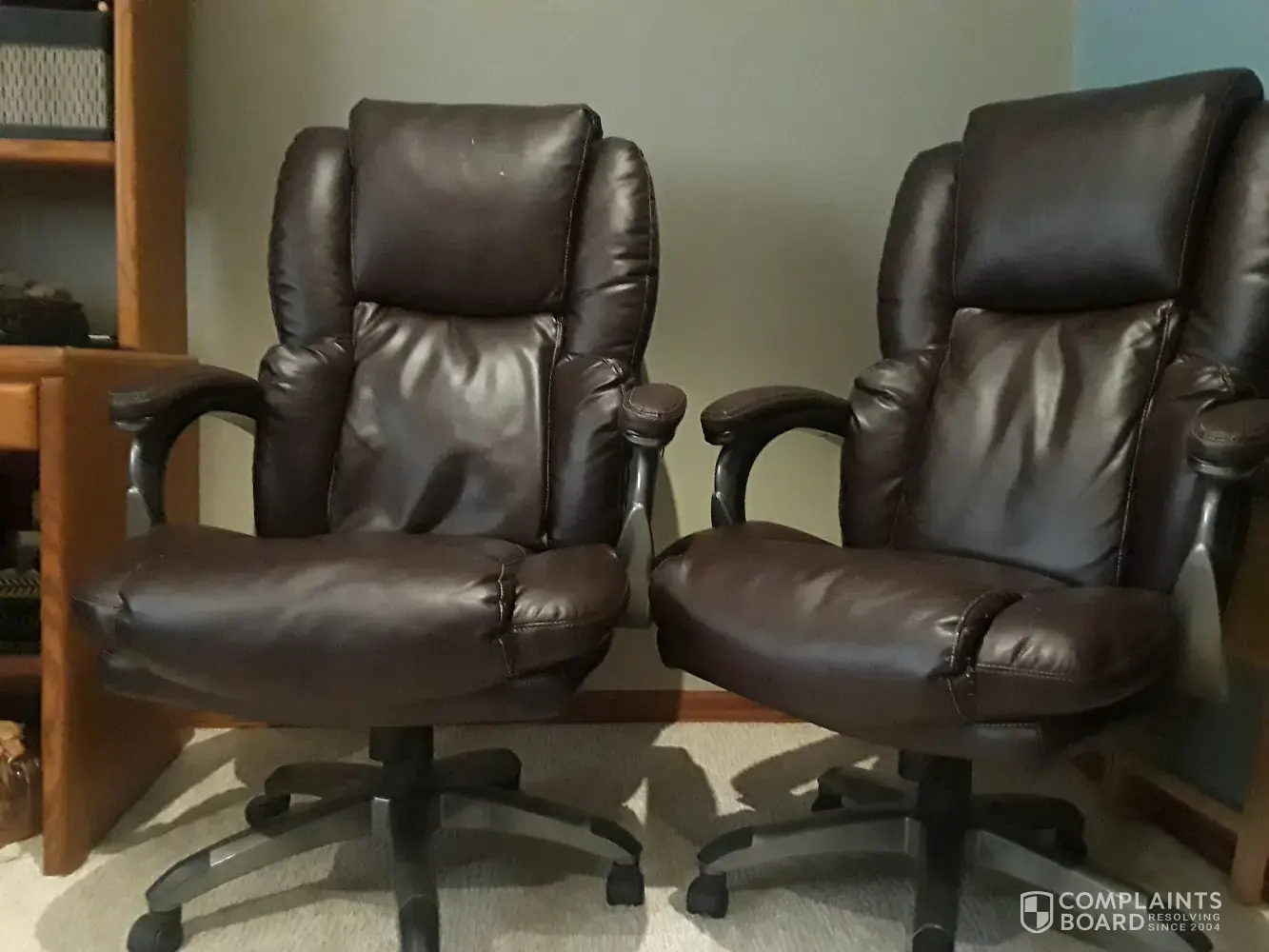 bought from BJ'S material is cracking and coming off on both chairs they are hardly used these are extra chairs. Feel that the material used was defective and should replace . These chairs are over a year old but have only been sat in a dozen times like I said they are extra chairs not the ones we use at our computers as seen in pics. We bought them and they where to high for desk so we sat aside to use if we needed an extra chair like said before maybe got sat in a dozen times if that. They have cracks and now the top of leather on head rest I flaking off. We have bought lane furniture before and that these would be well made but seems we were mistaken in this case.