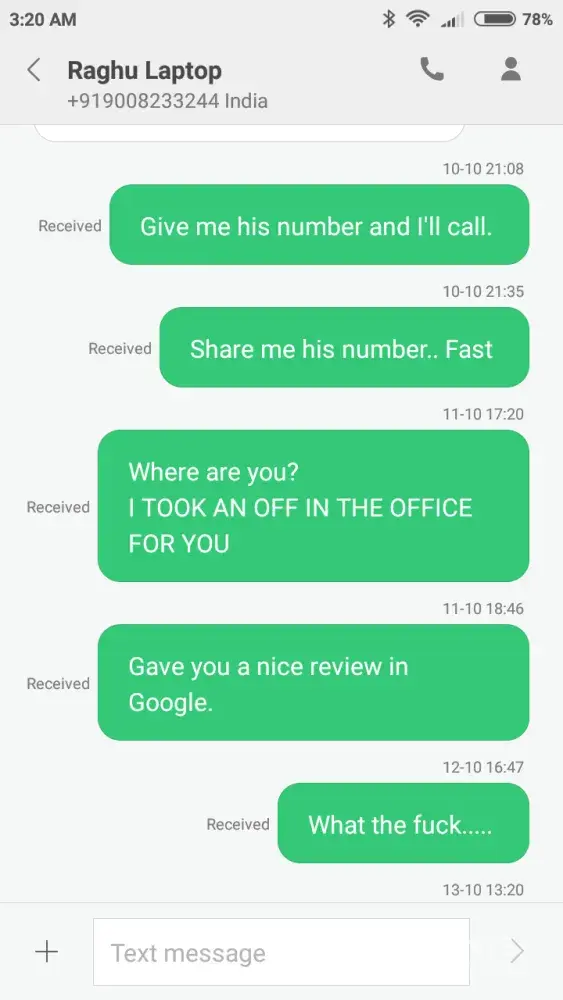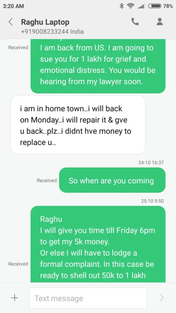 Bro4u Order [#203360] accepted by MobieLappy Order their services from Bro4 at September 2 Client Number- [protected], [protected] Client Name- Raghu Address : #128, 1st floor, itpl back Bengaluru, Pattandur Agrahara, Whitefield, Bengaluru, Karnataka 560066 Gave them for servicing of my laptop for a power issue. Took their own sweet time (6 days) for...