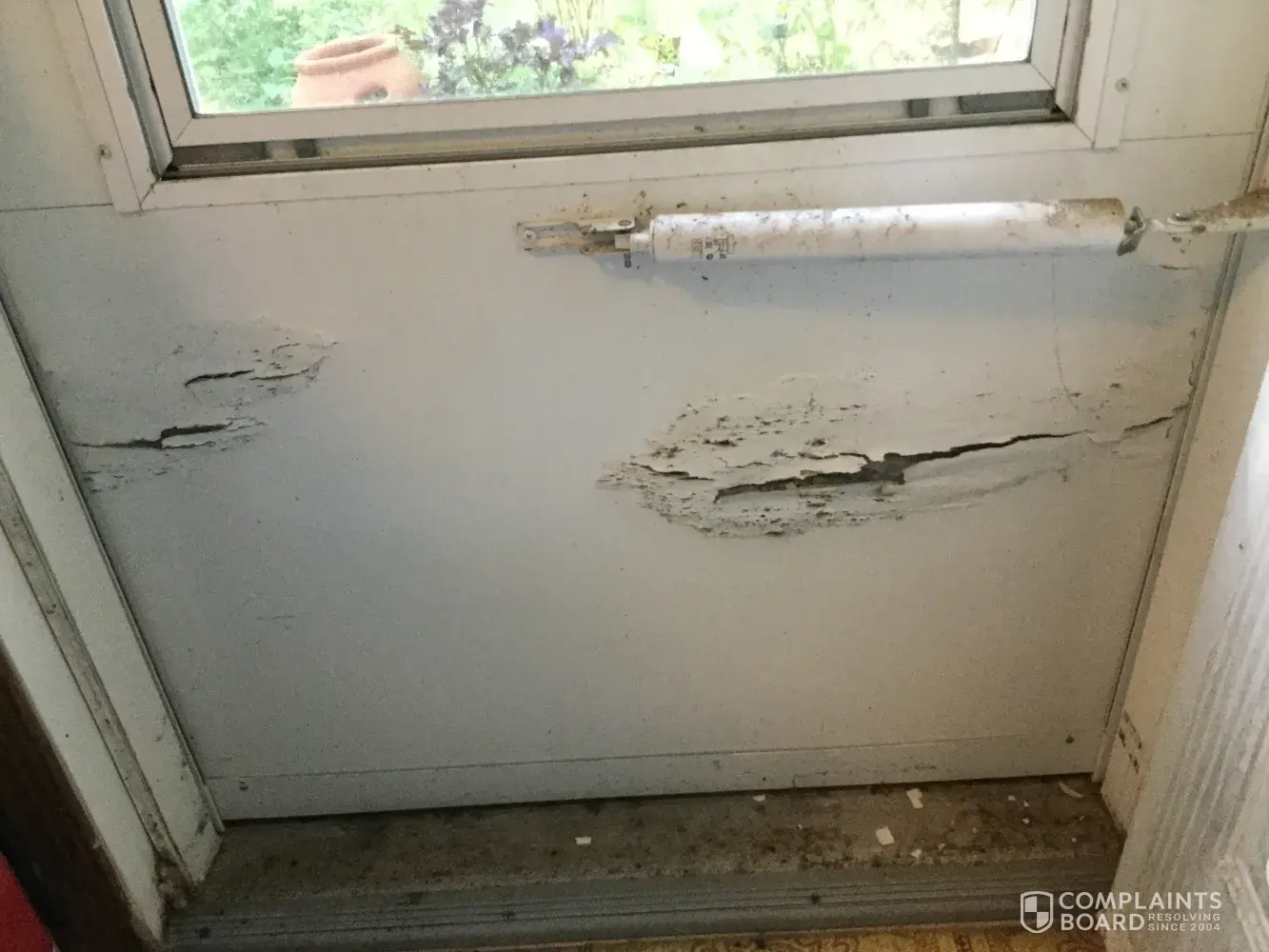 I purchased a Larson storm door because I wanted a high-quality door that would last for years. I am disappointed. First the door handles started to wear badly the first year. I could live with that. The bottom of the door has started to flake like it has moisture inside it. When I touch it, it just peels off. It's more noticeable on the inside of the door, but I can see it crumbling on the outside as well. Because of this defect, I am going to have to replace my "high-quality" door before I can sell my home. I should have purchased an inexpensive no-brand door.