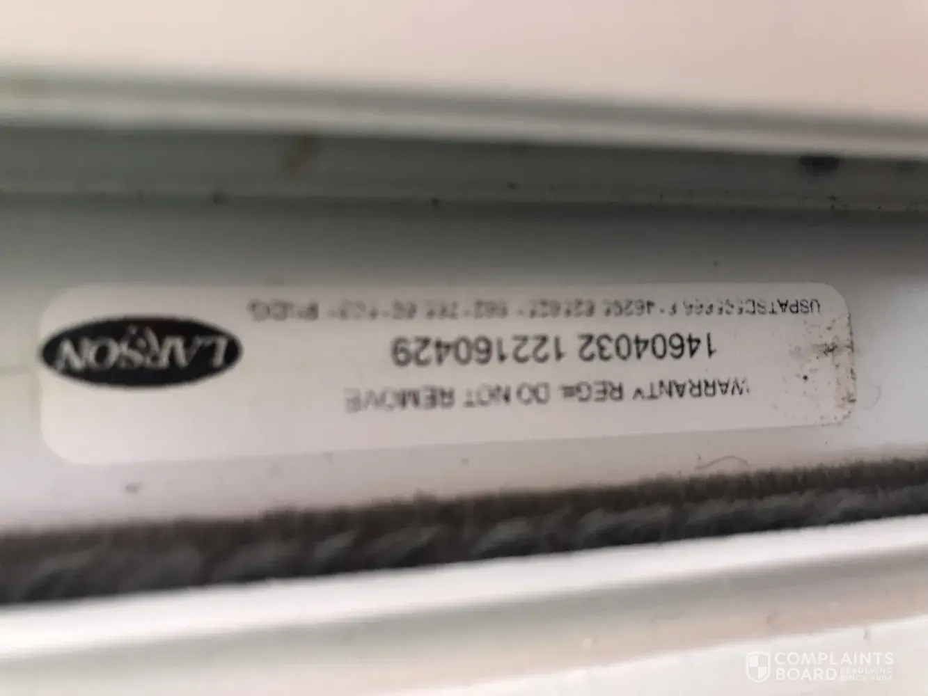 Brand new door installed two months ago, customer service really is pitiful at Larson. They act like they just do not care.