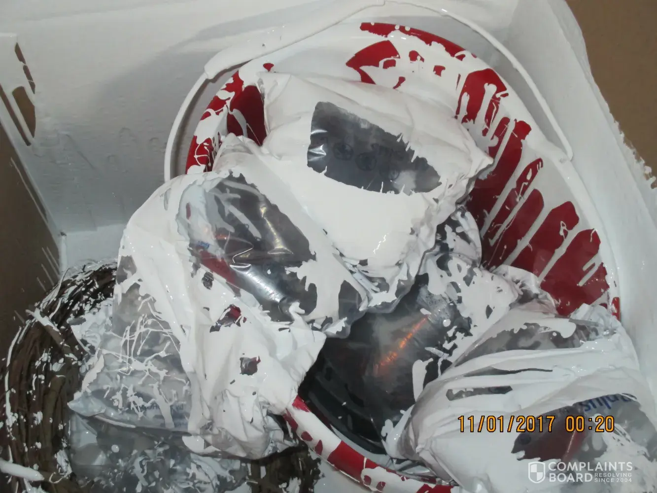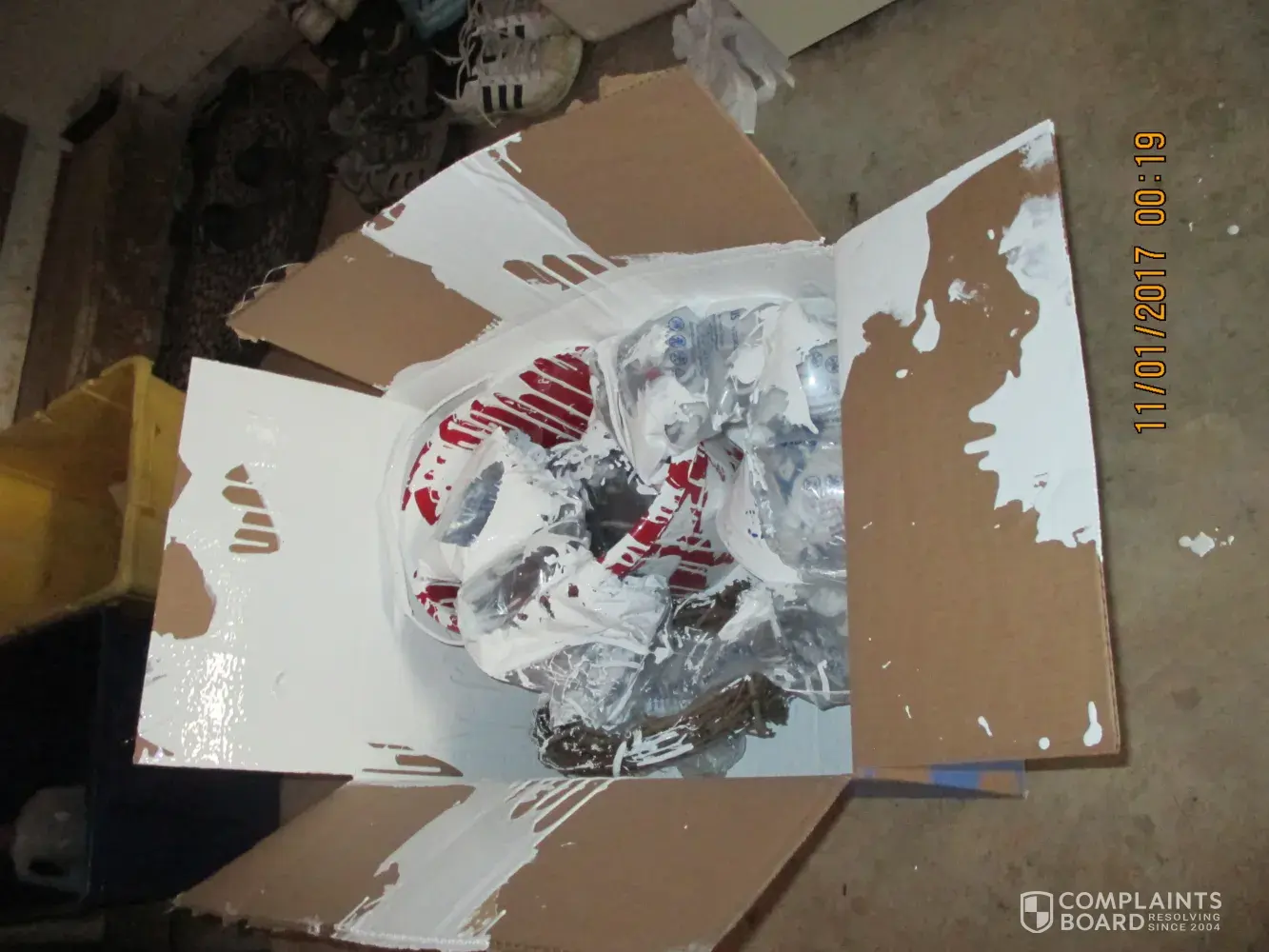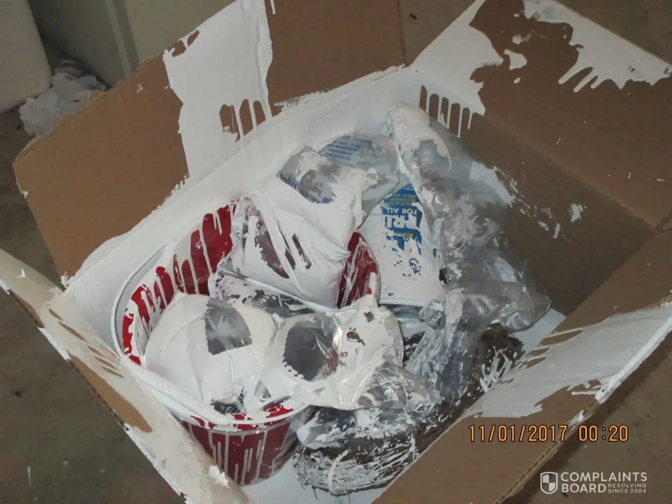 Package not only damaged, contents ruined...paint leakage all over porch, walkway, driveway, front door and more. Called twice, emailed, got a response and emailed again wanting to speak to the claims dept...I have been completely blown off. Terrible service all the way around!