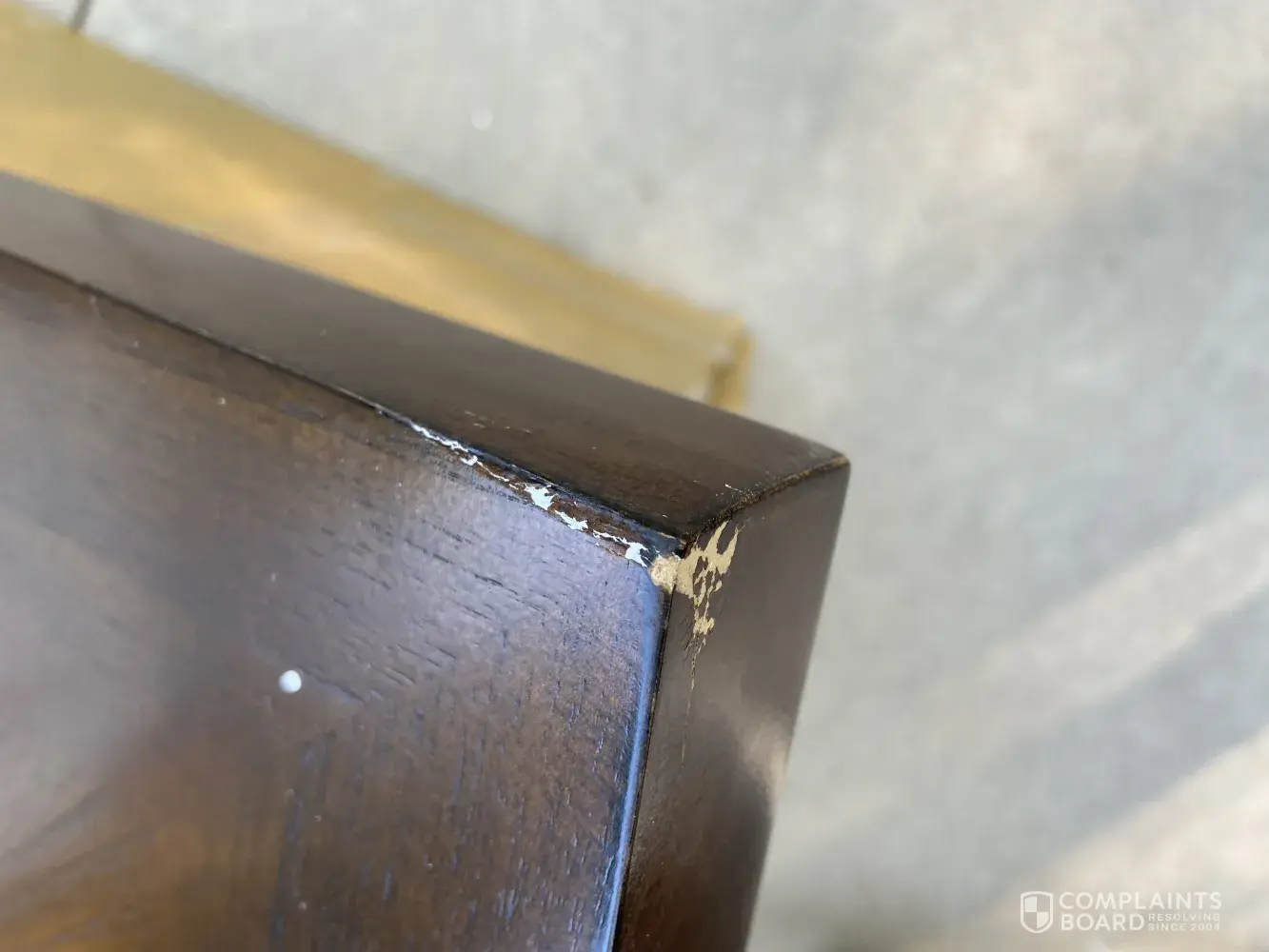 Received dining room set and table top is damaged. Have tried to call and have sent numerous emails but no answer