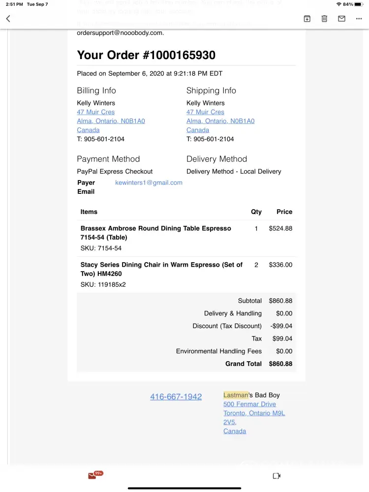 It went downhill after that. Store said to send pictures of the broken item to [protected]@nooobody.com and if no one replies in a week, call them (you know but no one answers so you can't call, but I tried again.