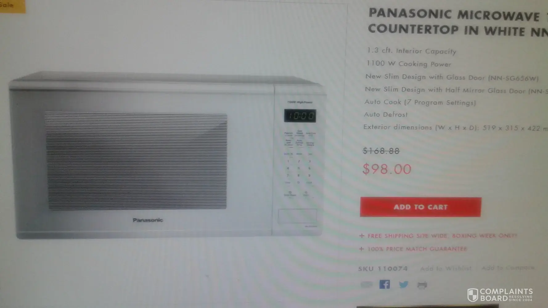 The second item was a Panasonic microwave oven. Works good, But every so often the door won't open when you push the button. This got really annoying that I almost wanted to put my old one back.