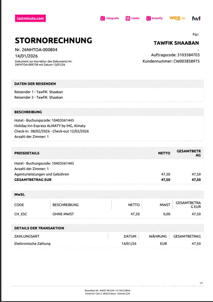 I booked a hotel on 13 Jan 2026 and cancelled the very next day (14 Jan) because the search results showed me a hotel in the wrong country (Almaty instead of Erbil). Their website clearly advertised free cancellation until 5 Feb 2026. They only refunded €47.50 out of €341.92. They kept €294.42 for a booking that was cancelled within 24 hours and...