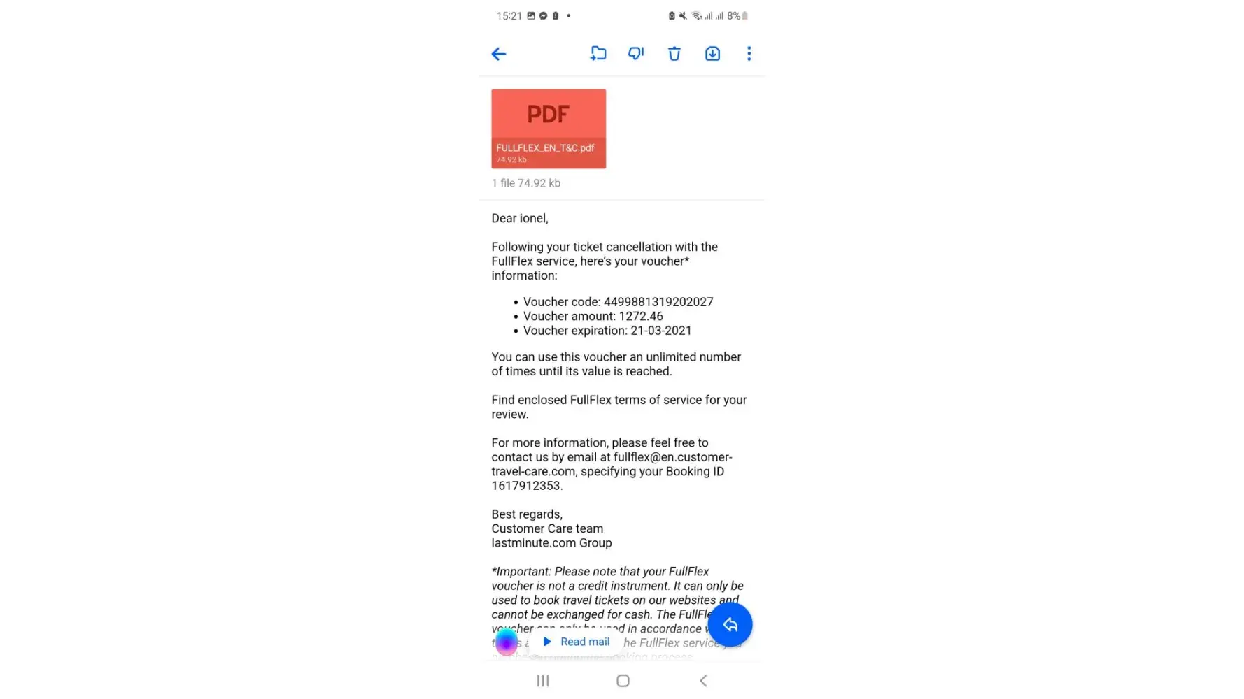 I believe the quality of service could be better, especially given the advertised quick resolution of the Covid-19 related cancelations. I would have gladly accepted a refund, or a voucher from LastMinute.com, but nothing like this was even mentioned to me.