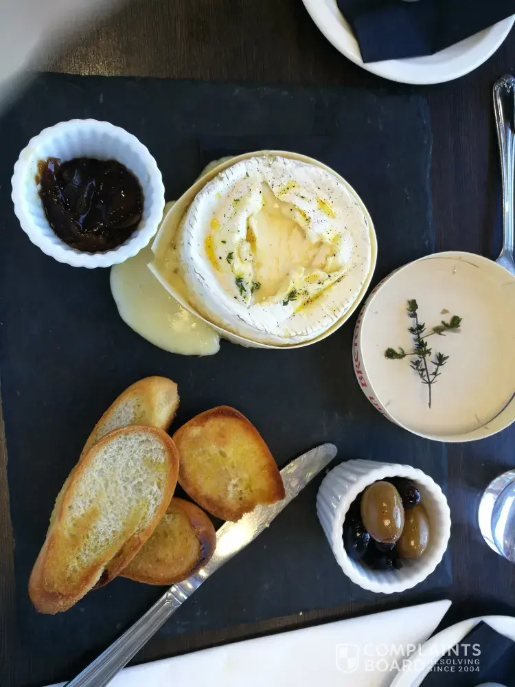 Unfortunately this is not where the horror of my experience ends as I ordered the camembert for lunch, considering that he agreed on lunch specifications at 10am and we gave the our lunch time of 12:30 I would have expected no issues, however I was wrong. When we arrived we were sat at a table and left for quite some time with no one around, when the waitress finally came back she brought our food over with her and I started to cut my camabert open, it was uncooked, lumpy and resembled cottage cheese. I brought this to her attention and she said that she would get another for me. My friend, at the same time noticed hair in her butter, this happened twice, to the point that the waitress finally gave up and gave her packet butter. When my second camembert arrived, the chef brought this up, he knew that the food was for out table as we were the only table in the entire restaurant, however he didn't bring the food to me, instead he placed it down on the table behind us and shouted over to the waitress to came and give it to me, so no apology, no thank you just utter rudeness. I knew straight away that it was not cooked as it had not been long enough, i cut in to this again and was correct, this was not cooked. At this point it was nearly half past one, my friends had all finished eating what they could of their Lunches and I had quite given up on the chef getting it right so I told them not to bother and had chips instead. To say that my price included a lunch option, of which I got a bowl of chips is absolutely unbelievable and not exactly what I would call great value for money. There was no apology or empathy regarding the issue with my food or the hairy butter, it was all very much bridged under the carpet by a very yound and unexperienced girl.