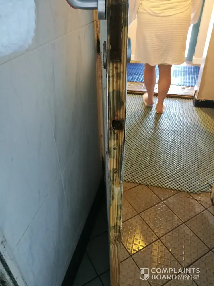 The air was thick and stagnant, the surfaces dripping and moldy, the drains were rusted, black mold was all over the doors and door frames, the ceiling was dripping with rusty drippings right over the loungers and into the pool, parts of the ceiling had fallen down and the floor was incredibly slippery, I personally felt very uncomfortable and uneasy, therefore we decided that sitting in the jacuzzi was the safest bet. As we got in and slid along a tile came loose scratching me. I was absolutely shocked and felt very unsafe, my friends and I had a look and it was apparent that the whole jacuzzi was falling apart, we counted 26 considerably sized holes, a few of which had loose tiling just moments away from braking off and scratching someone like it had me, this is a major hazard and could have caused me serious harm, I am lucky that it was not more severe, however this is completely unacceptable and certainly not what you expect when visiting a golf and Spa resort.