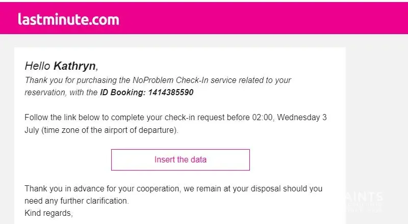 paying for last minute.com to manage my flight check-in and boarding pass.