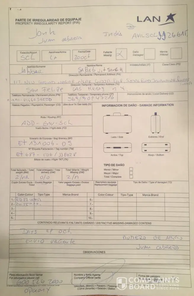 And I called many times to your office and they said your baggage's are on the way but I have not received my baggage's on time. i received my one baggage on 25 October 2017, which i received from BLUE EXPRESS OFFICE from LOS ANDES not on that address which i provide to your airline and second baggage i received on 26 October 2017. Its written on the document you gave to me that if you not received your luggage within 24 hours one of your staff will contact and update me, but no one contact me instead i have to call to the airline to get updates .what is this, what kind of service you are providing, even you are not on your commitments, i am amazed how you running this airline or you don`t bothered about your customers.