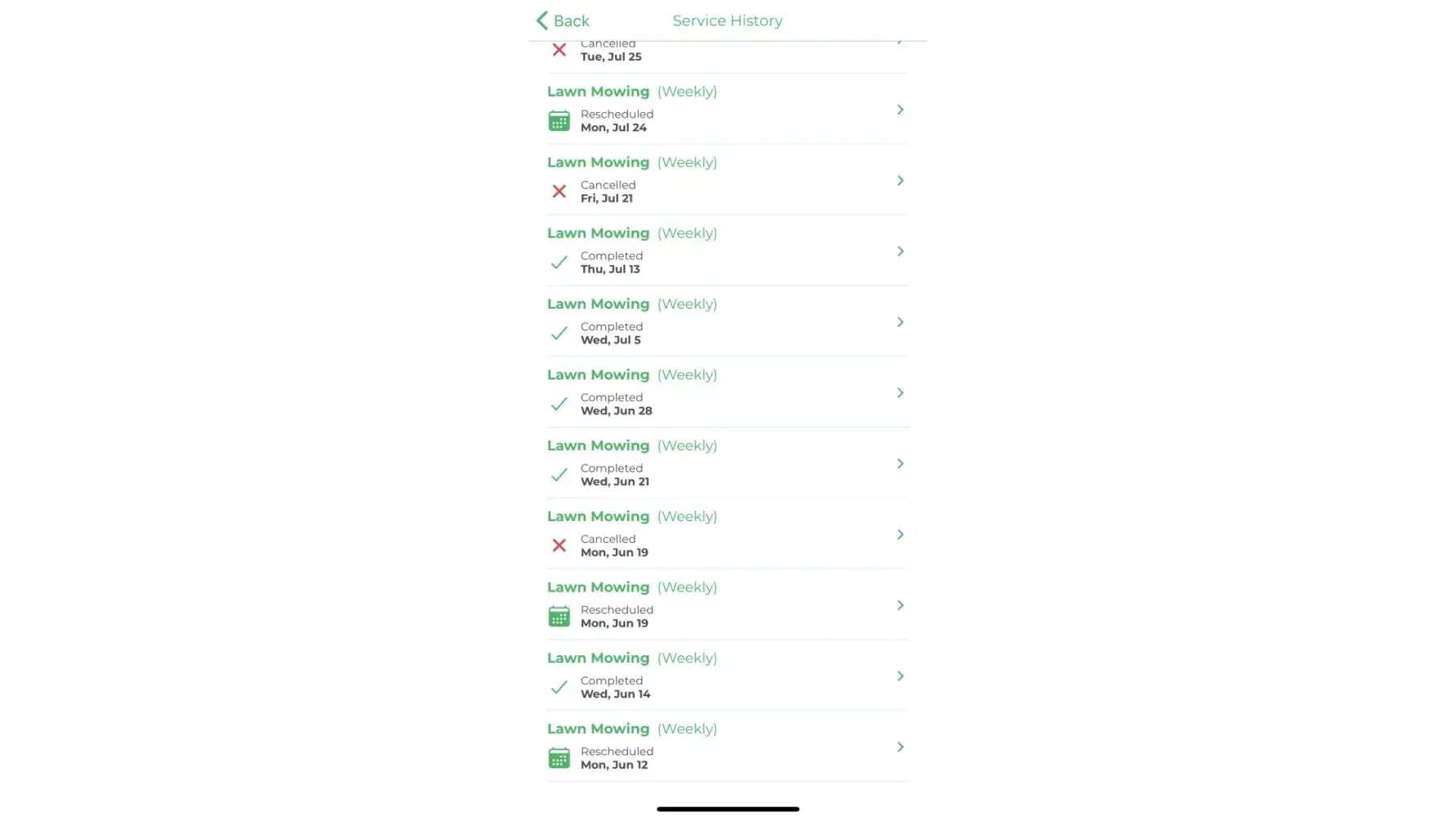 I have requested to change the crew, I have contacted your customer service, and just like the provider, your customer service team has led me on by saying they spoke to the mower and assured me they would be there on a certain day. However, when the person canceled again - the customer service team only would have the same solution: They would reach out to that same person who has continuously canceled on me rather than giving me a new crew. They finally told me they could not find another crew to come service my area.