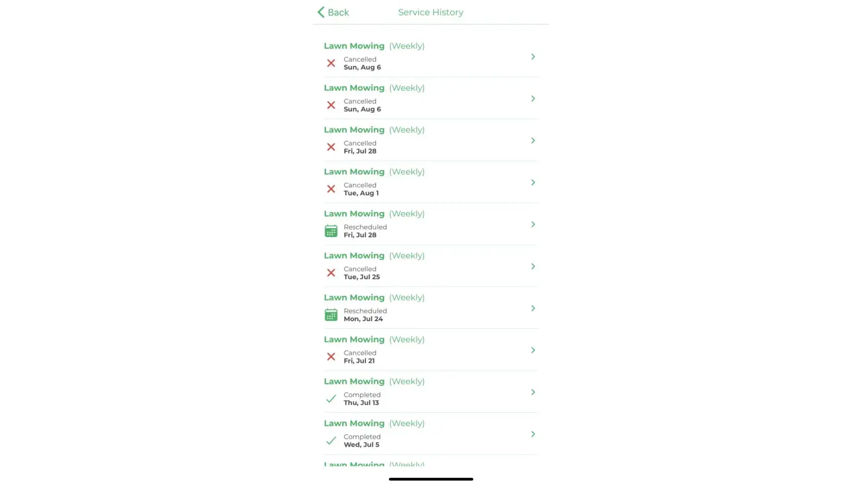 As of this morning, Aug. 5, no one showed up to the tenant residence. I have called and canceled all services for that property as well. I will NEVER do business with this company again, and I would NOT recommend it to anyone. You will have nothing but headaches trying to get your lawn mowed. There is a huge disconnect between the phone number that you call and their ability to notify crews. It's a shame because I really wanted to like this company, but unfortunately, they just didn't deliver.