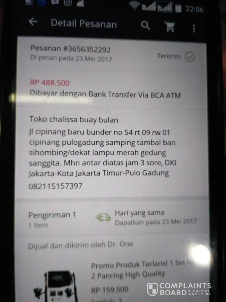 Mohon bantuannya perihal kekurangan barang dari pesanan saya di lazada indonesia dimana saya pesan 3 unit dari 1 set 2 pancing high quality by Dr. One