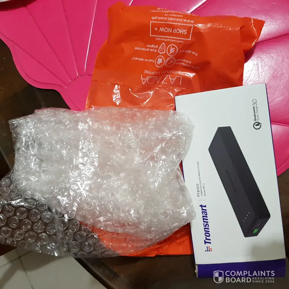 I bought 2 items with a same brand name. Tronsmart powerbank and a 6 pcs of micro usb cable. Only the powerbank was in the sealed plastic orange bag with bubble wrap. I informed them about it several times calling them but all I got is promises..not resolved until now. Recently somebody called me from Lazada her name is Karen. She is a manager in Lazada and she told me if I'm willing to settle it with a voucher amounting to P800. At first I really don't want to accept her offer but in desperate to get my already paid item I accepted it knowing I will get the voucher within 24 to 48 hours. Now is already 96 hours from the time she offered me. Never again to trust this Lazada.