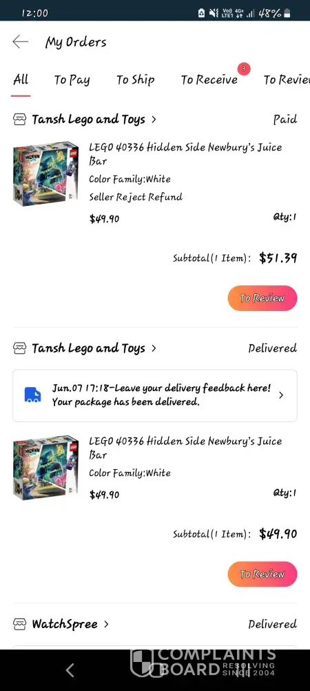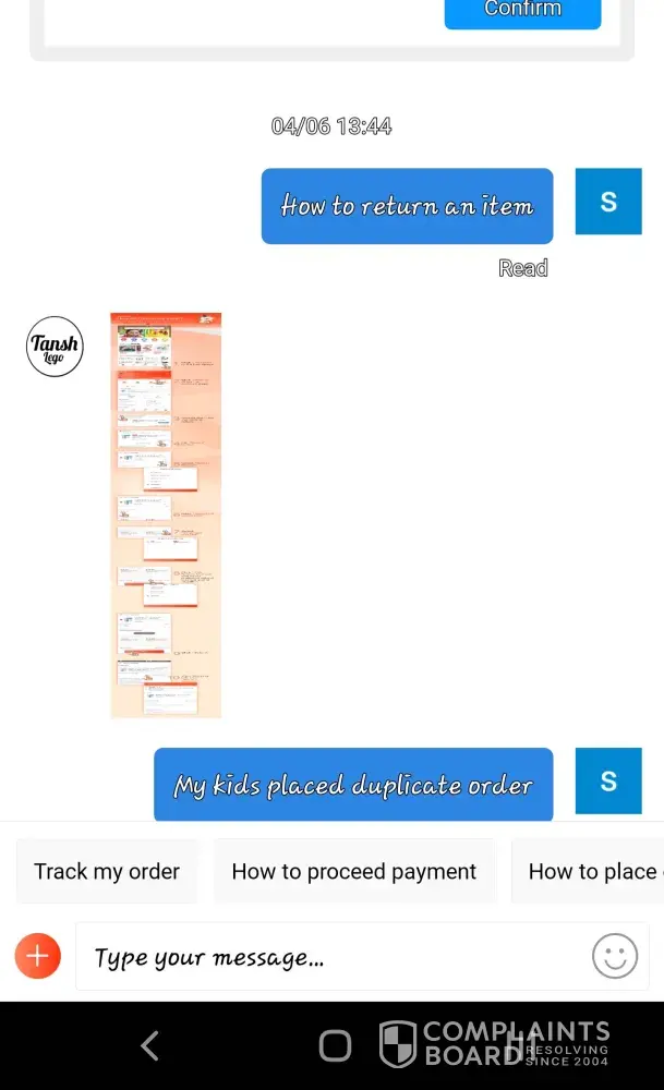 Complaint again to customer service and was told will provide a satisfactory resolution. Just received response today that it has been rejected as seller already shipped item and we should have checked! This is ridiculous! Pls I demand for a refund! This is really a dishonest seller as I noticed I had purchased with him/her before at another platform and had issues too!