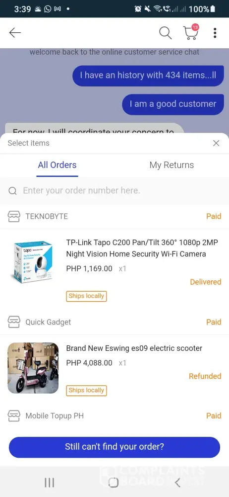 Hi, please refer to the reported cases below and take immediate actions for refund. It has been more than 15 days every time I contact Lazada help centre they just keep me saying the case is filed and will update you within 24-48hrs and still I haven't got the refunds.
