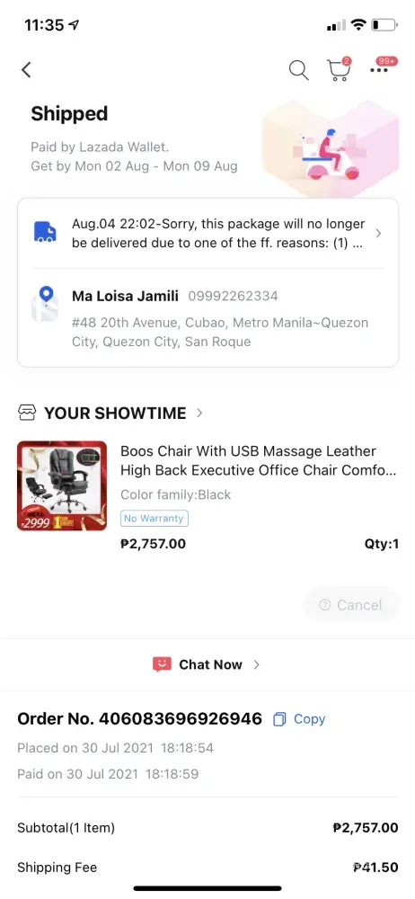 As stated and committed by lazada, 30/7 is last allowable delivery date. However when I checked on my status thru cleo and lazada fb, I was told to wait for another 3-5 days.. Else cancellations and refund will be performed after 15days, this is cheating customer and not acceptable