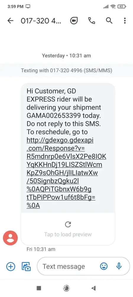We only accept pay. ment via G'Cash directly to courrier service account.
