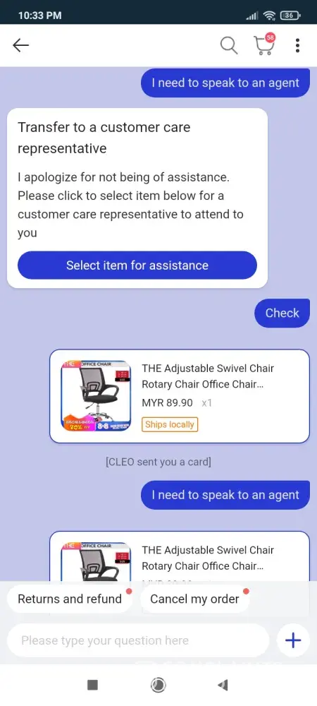 Keep on emailing the "automated" email to please customer saying Lazada is concerning customers! But the more automated email without solution you get from Lazada, the angrier you are!