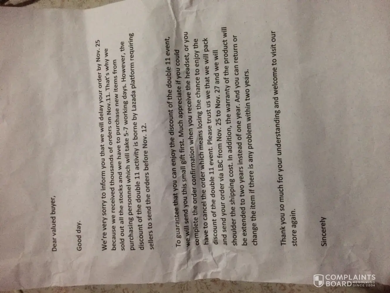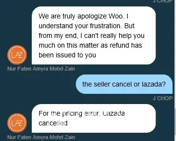 This makes me feel that Lazada doesn't want to take any responsibility about this issue.