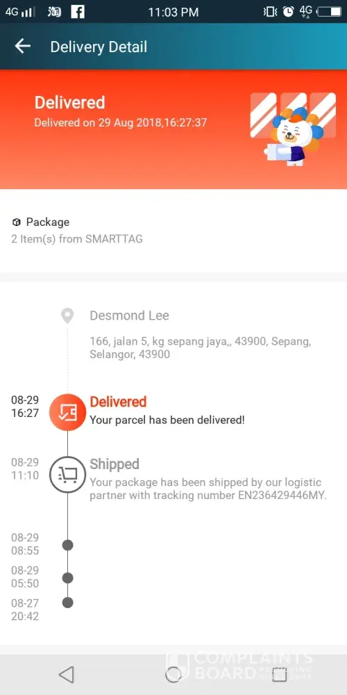 hi. i am desmond from malaysia. i bought an item at lazada and i was told the seller is local. according to the tracking period, the goods should arrive in 3 days. now is over a month and i receivs nothing. the tracking number showed item.shipped and received. however, the receipant was not me. the delivered address is up north near penang. i live in selangor. i have attached Snapshot for your references. all info you might need is attached looking forward to here from you soon.