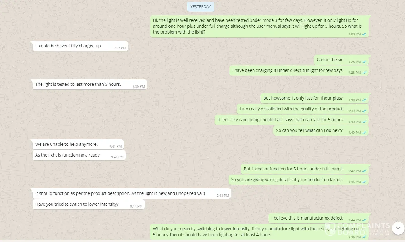 4. Seller putting up all the wrong information in their product details which cheated the customer that purchase their product.