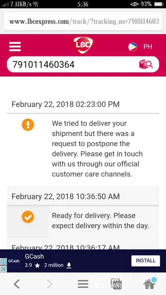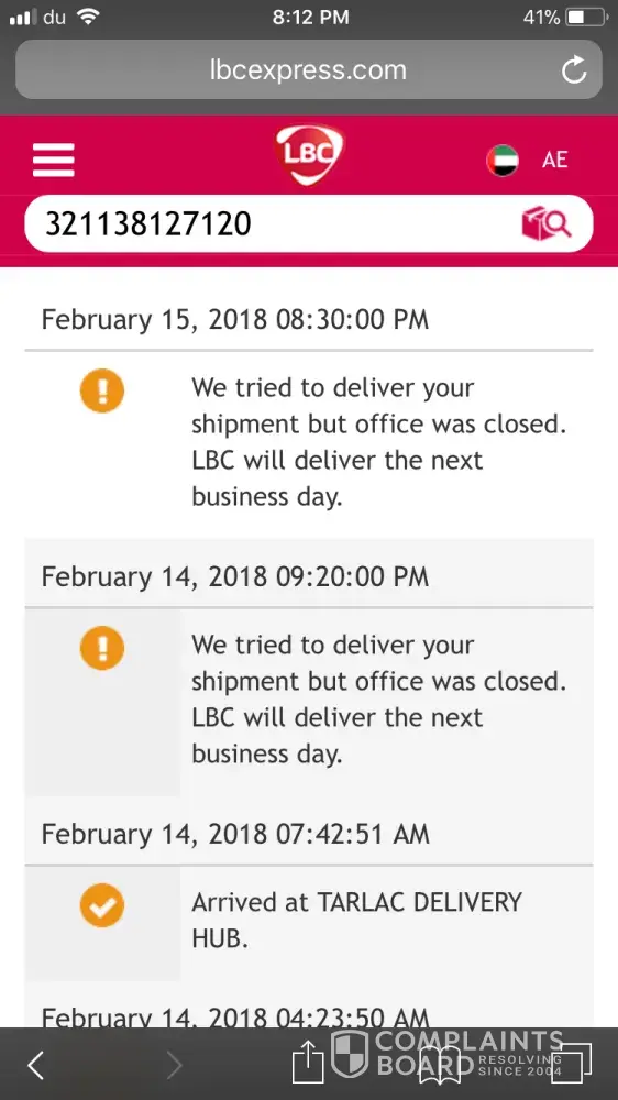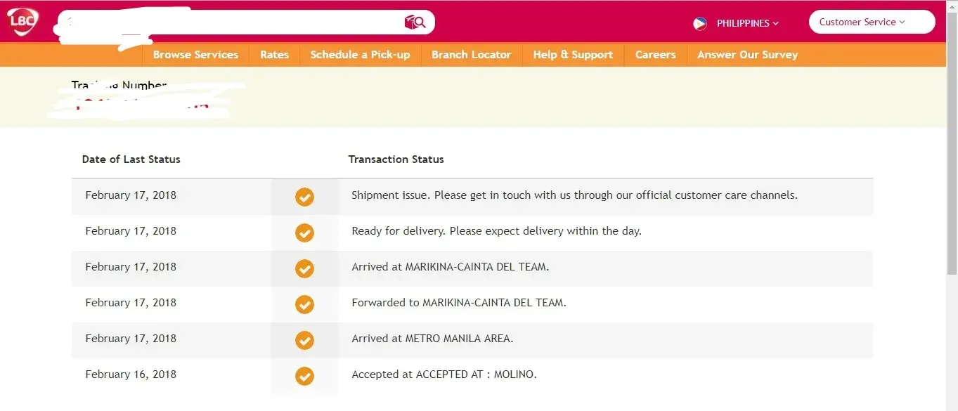 PS. I texted the lbc branch near me already but there's still no update. Please help me fixed it so i can get my package already. It's almost 4 days now that didn't get my package.