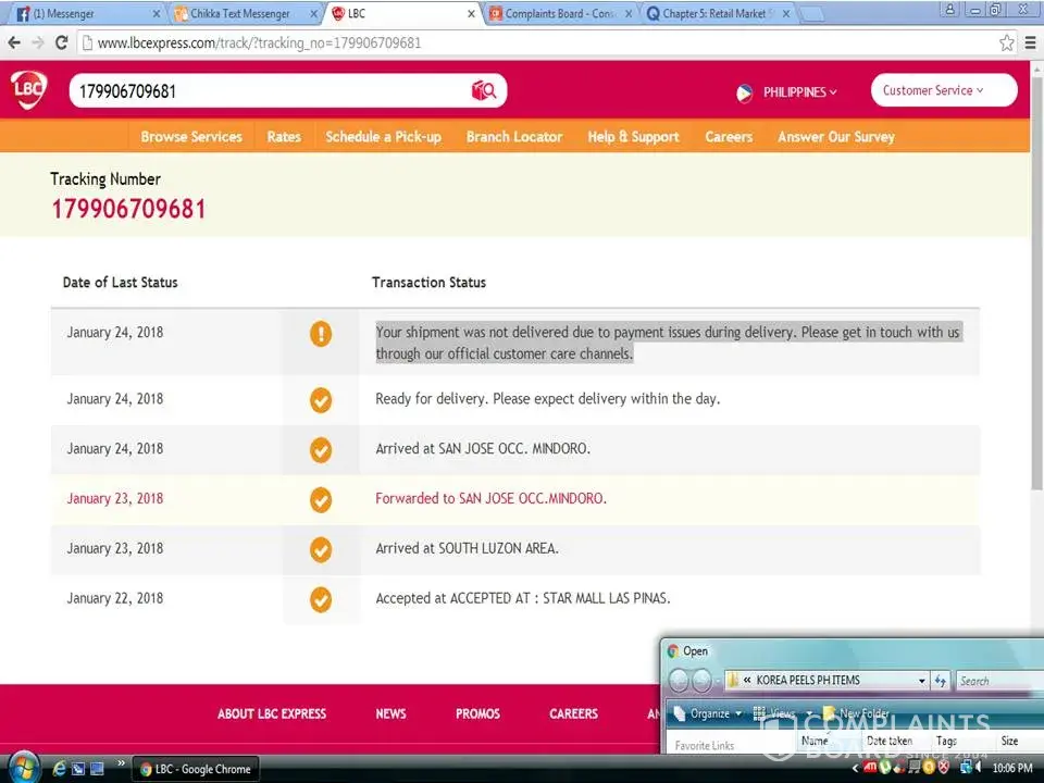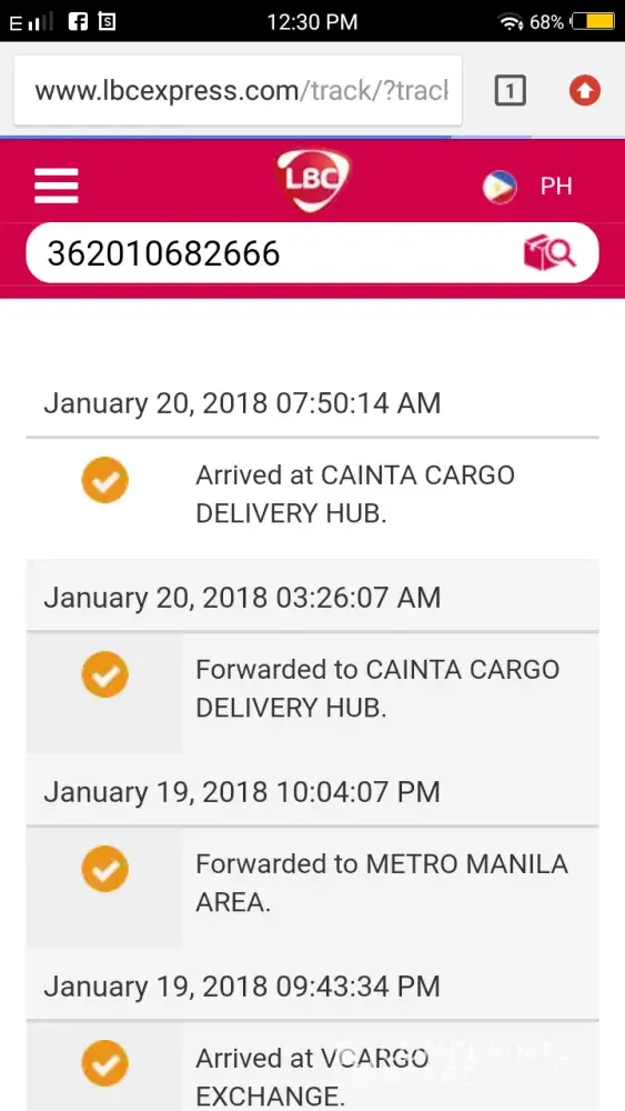 This is what the LBC Tracker says. Nagpaship po ako Saturday then I tracked the parcel kahapon (January 24, 2018). Yung nakalagay ready for delivery and expect it within the day. Nung chineck ko ulit ngayong araw yan na yung naka-display. Ano kayang issues yung na-encounter nila? I paid the shipping fee. So, I wanted to know kung anong nangyari sa parcel ko with tracking number [protected]. Looking forward to address this concern as soon as possible. Thanks.