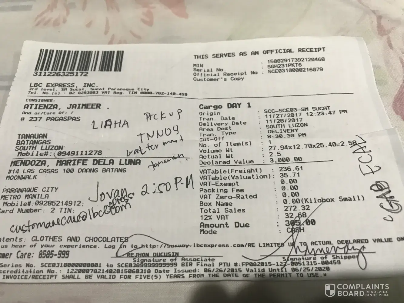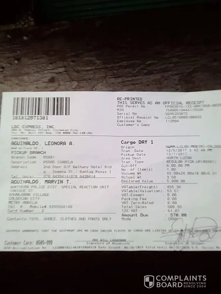 I would like to file complaints which I hope mabigyang pansin nyo. Kasi as I read sa pin na suot ng mga LBC employees, VIP ang treatment nyo sa costumers, hindi ko po ramdam.