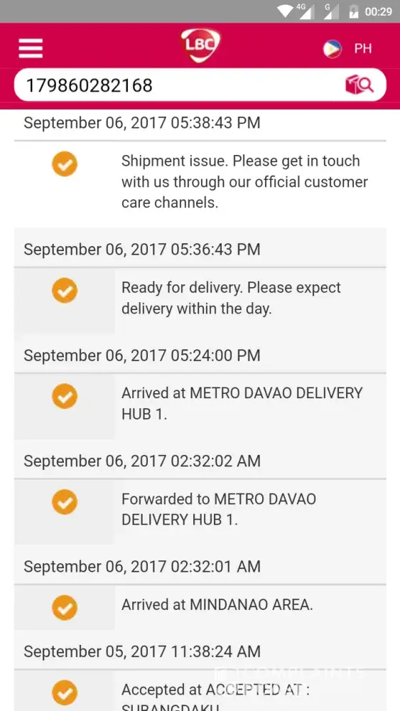 My tracking no. is [protected]. As I've checked it yesterday its says it ready for delivery and still my friend did not received it and so I track my package through lbc website and it says "shipment issue". Im bothered by it so can you tell me if my package could still arrive and what was the issue? Thank you. Please if you want to let me know what happened contact me through the number [protected].