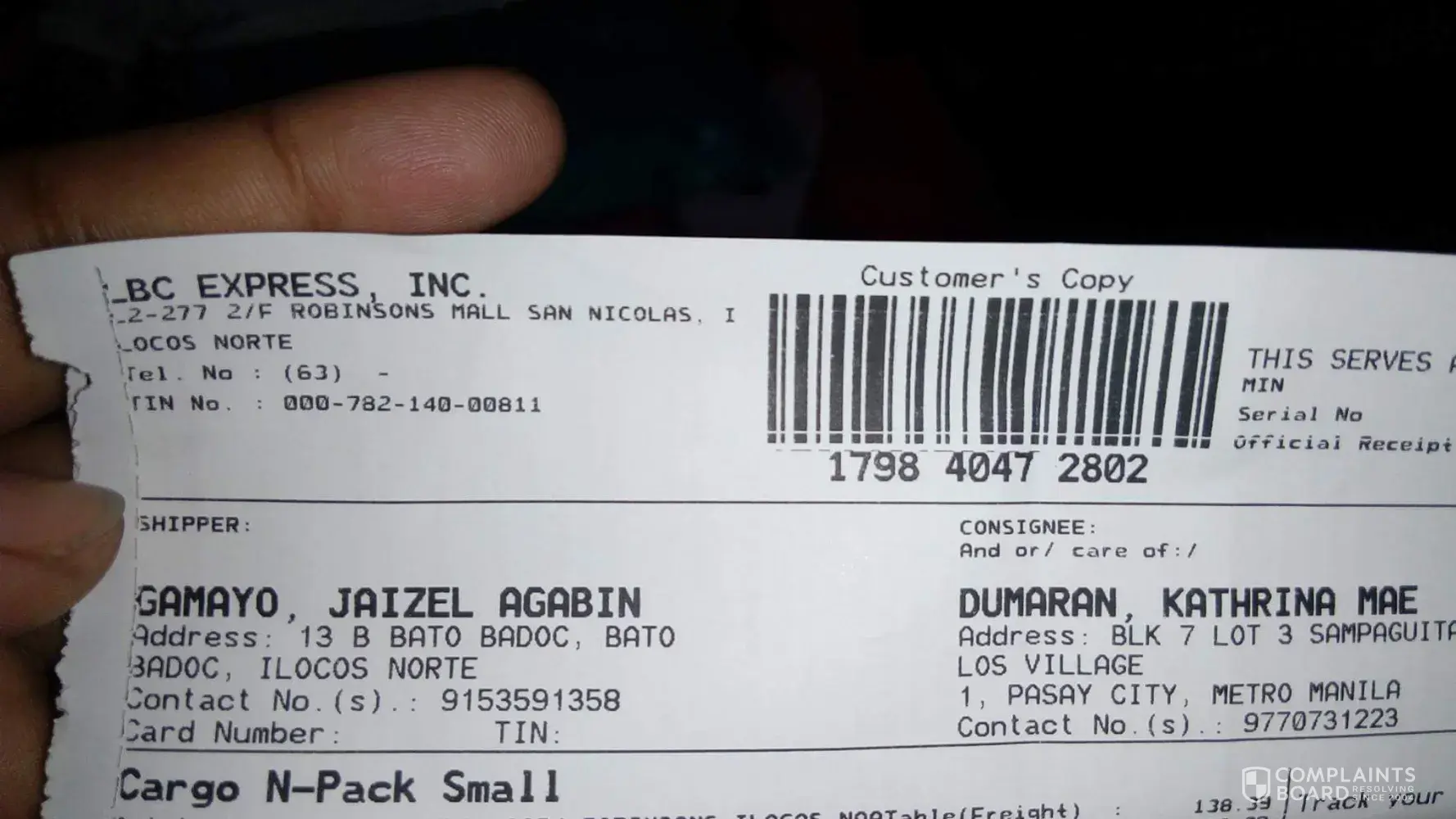 Good eve po. IThis is to inform you/ LBC Express, that i'm very disappointed in sending items thru you/lbc, because i went to LBC Mabini, Batangas branch, and sent my 3 kinds of items with a total of 7 items including cellphone, last friday, june 5. I wrote the name of receiver and the address CLEARLY, to be received by him in Brgy. Sto. Nino, Magalang Pampanga, with tracking# [protected] but i wondered why i received LBC notice on June 8 that my shipment was received by other person whom i do not know, and not written in the form i filled up.. HE IS NOT THE PERSON TO RECEIVE IT, why did your delivery man gave it to him? I called the correct person and there wasn't package brought there by your LBC. Can you explain why you gave my shipment to the wrong person in a wrong place? until now you dont have the initiative to make it clear to me while it was already reported it to you by your branch? what about now? LBC mabini branch told me that you/LBC customer service personnel will call me but until now why i never get any words from you. Cellphone has important files/documents/data there, what will happen to it? how about data privacy law? if other persons got that items, opened it or use it, what can you say? When can you contact me? next year? while i reported it early to the LBC personnel here in Mabini, Batangas. Can you give me explanation about it? How about my items sent? what will happen now? can i recover it soon? Please answer me because that is your RESPONSIBILITY, to trace it and give to right receiver. i hope i will receive your answer about this. when you reply, i'l give you the tracking number. PLEASE DO YOUR OBLIGATION BECAUSE SENDING PROCESS WAS PAID TO YOU. and i trusted you...Data in the cellphone is in danger. May i remind you that we have our Data Privacy Law. Please answer me...i'm waiting for your call even thru my cellphone i gave/used in sending/[protected]. PLEASE TRACE MY SHIPMENT and give it to the right person completely, OR send it back to me asap.