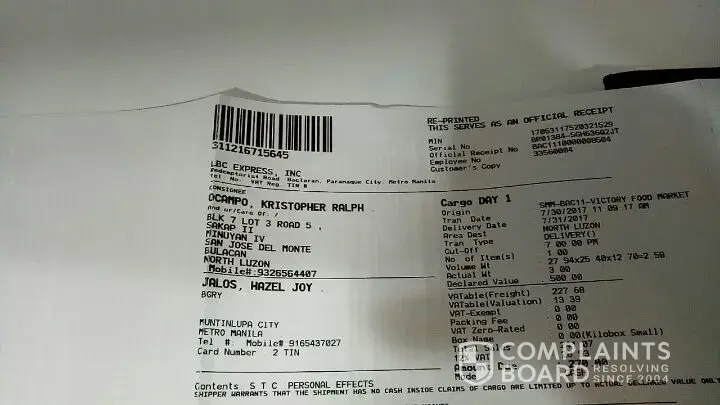 The lbc tracker said "your shipment was not delivered since recipients address is out of lbc's area"