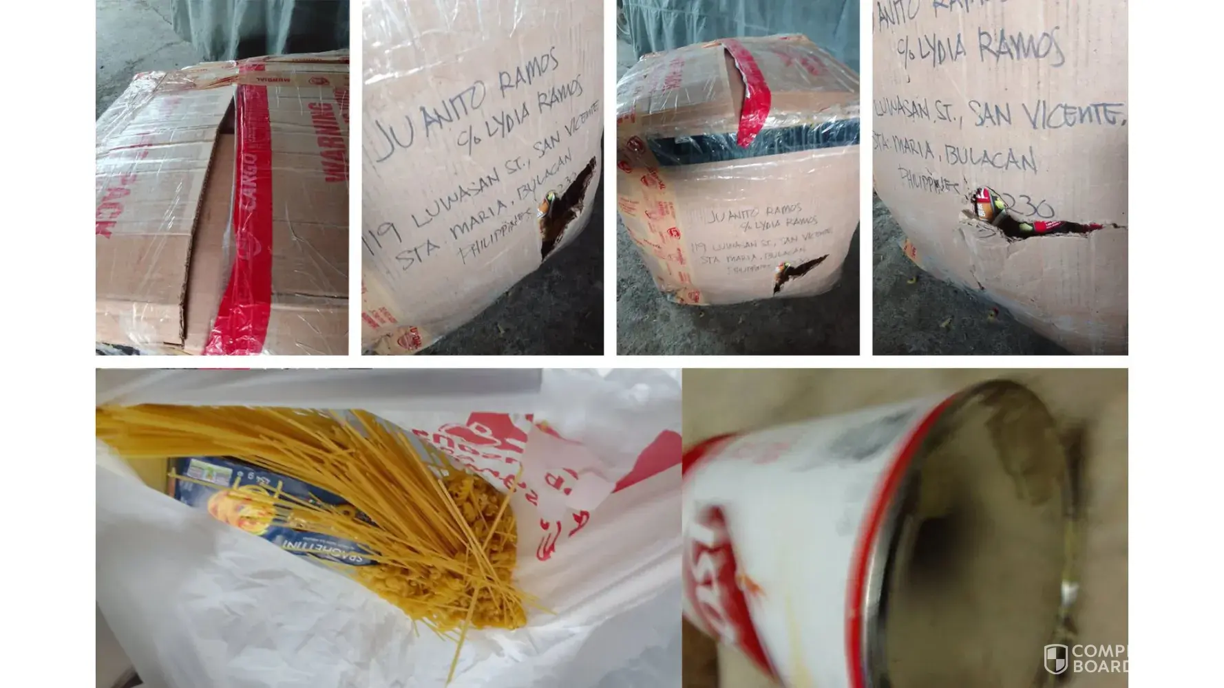The package I sent was obviously opened and several items were missing (please see attached picture). I reported this complaint last year and up to now, there has been no response. They ignored my complaint. The good like individually wrapped items is all gone. Some special items like adult supplement food, vitamins and booster meal were damaged and cannot safely consume anymore. Pasta is scattered all over the place and canned goods are severely dented and not safe to consume too. To enlighten further of this case, here is the ticket number for reference of this case [protected]. Also, this was brought up too via social media who I chatted with namely Tina, Cha and the most recent Jah.