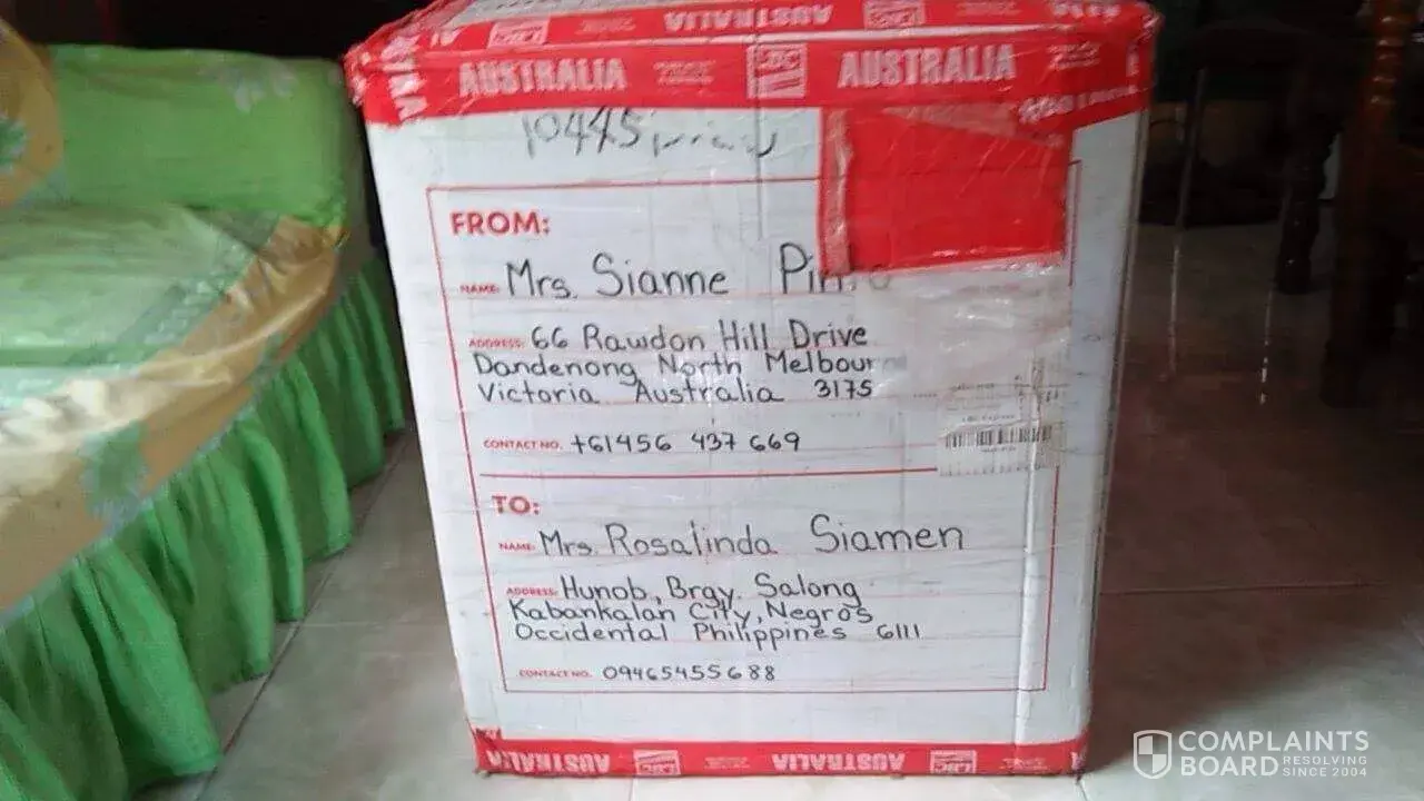Hi po LBC, ako po si Sianne S. Pinto, nagpadala po ako ng Balikbayan box last April 28, 2017 galing po dito ng Australia at papunta po ky Rosalinda Siamen, ng Hunob, Brgy. Salong Kabankalan City, Negros Occidental. Dumating po ang box last Friday June 23, 2017 at 2:42pm Philippines time. At ng sinabi ko na, Ayan apat na malaking milo ang pinadala ko diyan para hindi na kayo bibili o kukuha sa tiangge, nagulat ako ng sinabi nila na, Anong apat, tatlo lng nandito, doon na ako nagduda at kinabahan kaya chineck ko ang customer copy ko dito at tiningnan ang mga pics ng box, hindi ganun ang pagka empake ko nsa taas ang candy eh lhat ng food nilagay ko o tinakpan ko ng mga damit at bedsheets, sa madaling sabi nsa ilalim at gitna. At isa din napansin ko lumuwag ang box dahil bumubukol ng konti yun sa taas, sa madaling sabi hindi sya flat sa taas pero kng titingnan nyo ang box hindi na ganun. At natupi at natapon pa ang Nutella na container na very sealed yun kasi hindi pa yun nabuksan pati ang lata ng Milo natupi din. Ang mga nawalang items, 1 bot. DAVIDOFF cool water for women, 1 Milo 1.25kg, 1 bot. Centrum vit., 5 noodles cups, iba hindi ko na alam kasi assorted at ilang beses na ako nagpapadala ng mga boxes pero ngayon lng ito nangyari. May isang box na nman sana ako ipapadala next month pero parang natrauma ako kasi binubuksan at kinukuhaan pala. Akala ko nawala na ang mga corrupt kasi Duterte na, at ayaw na ayaw yan ni Tatay Digong. Please aksyunan nyo agad para babalik nman ang tiwala ko, namin mga OFW sa inyo LBC. Maraming salamat po. Here's my contacts, number +[protected] and my email address: [protected]@gmail.com