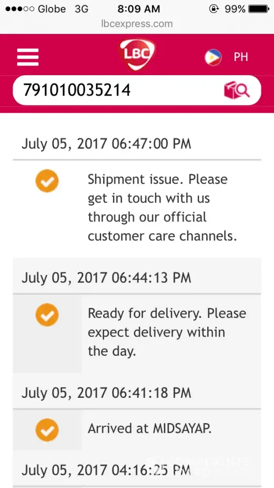 Nagpadala ako sa LBC last june 28 and supposedly delivered yeterday. I ask my brothers and sisters if dumating na ba from 4pm til 7pm but they said walang dumating na LBC delivery. I checked the status online ng package na pinadala ko around 10pm and the status says nareceived na daw ng kuya ko 8:07PM. But my brother confirmed no delivery has been made. Also there should be text message received when your package was delivered successfully. I am a regular LBC client sending packages and it always delivered the day after around 2-4PM and I always received message for successful delivery. But now is not the case. No delivered package and no text message however, they are insisting that the package was delivered. Where does our package go?